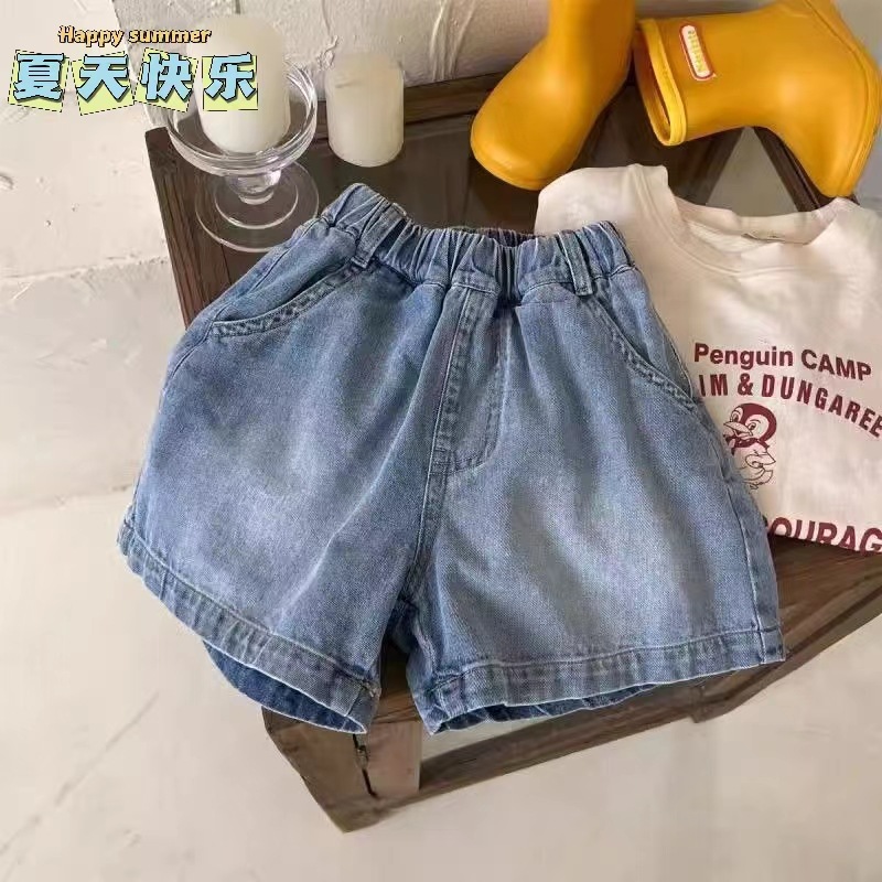여름 얇은 5 점 바지 중소형 어린이 한국식 캐주얼 반바지 어린이 데님 반바지 남학생 여성 바지