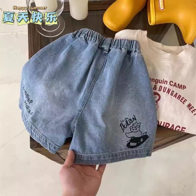 여름 얇은 5 점 바지 중소형 어린이 한국식 캐주얼 반바지 어린이 데님 반바지 남학생 여성 바지스토어 가기