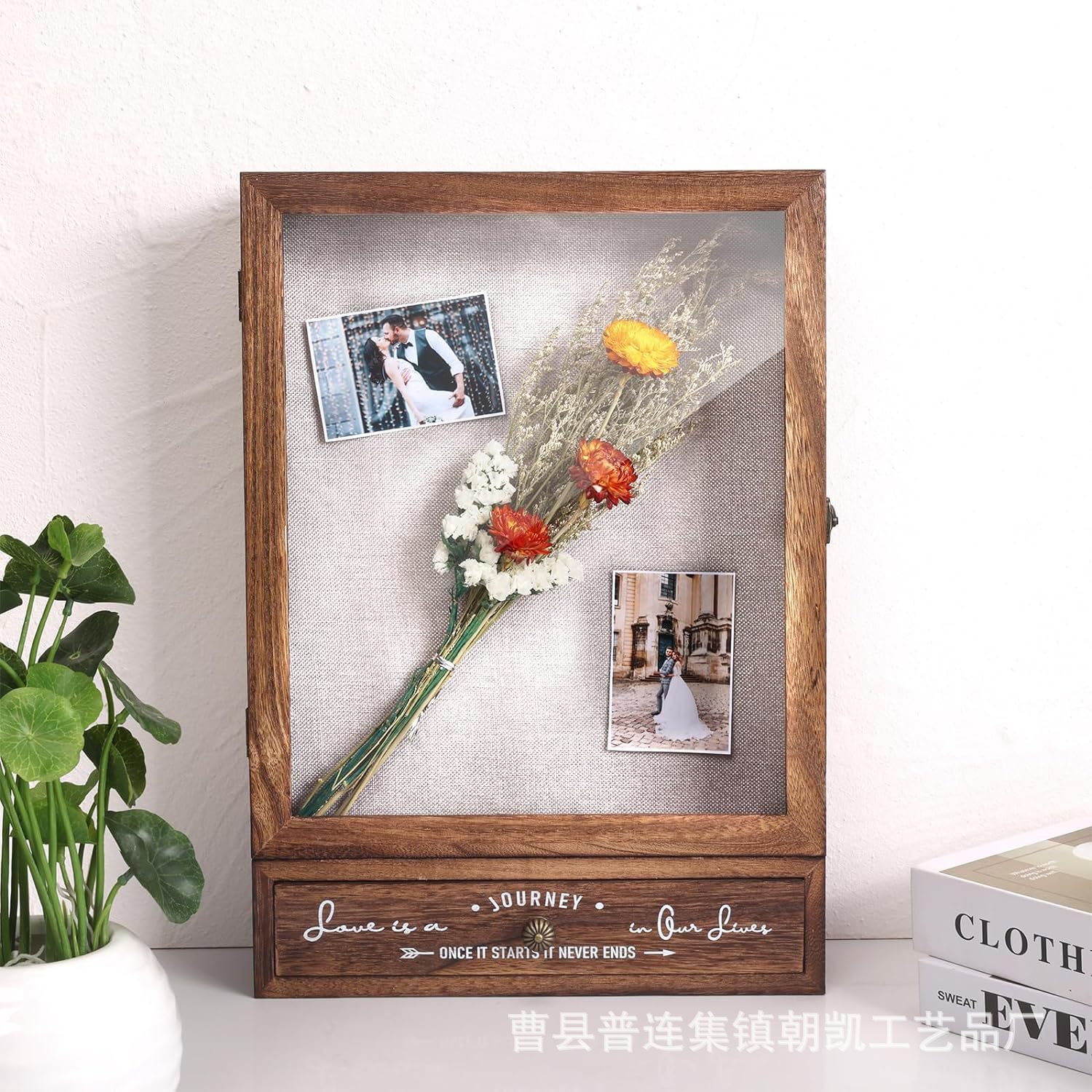 나무 플립 투명 사진 프레임 곤충 말린 꽃 표본 디스플레이 상자 빈 저장 디스플레이 상자 벽걸이 기념 상자
