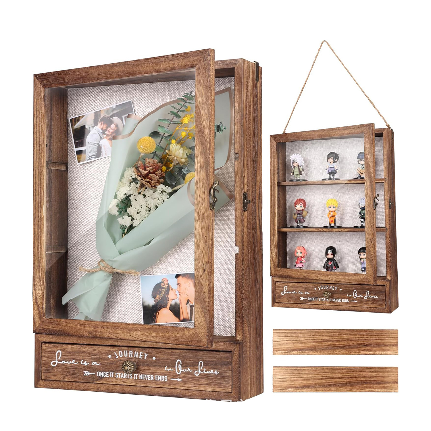 나무 플립 투명 사진 프레임 곤충 말린 꽃 표본 디스플레이 상자 빈 저장 디스플레이 상자 벽걸이 기념 상자스토어 가기