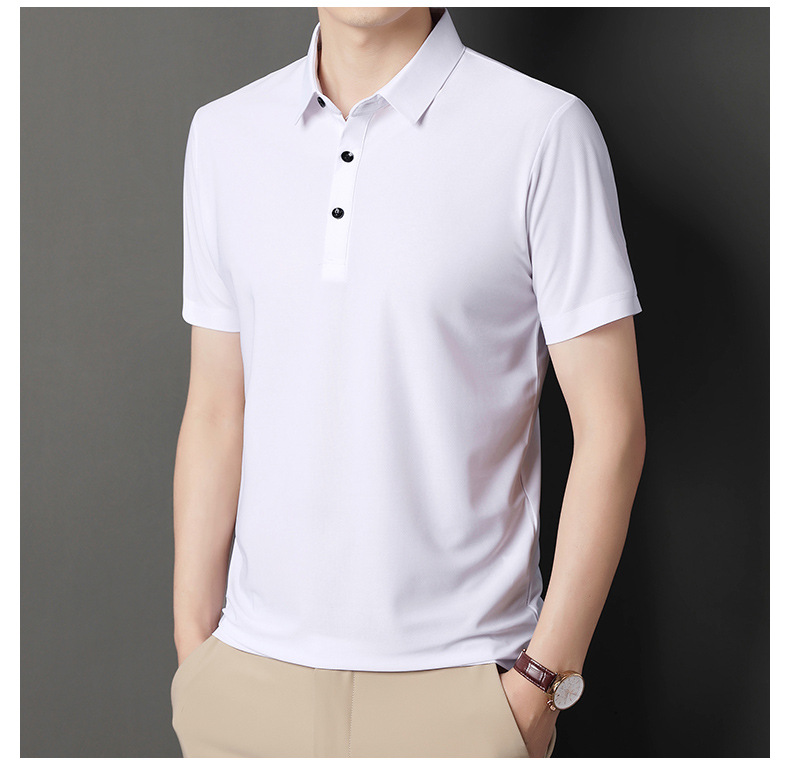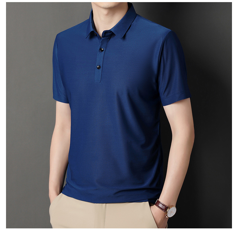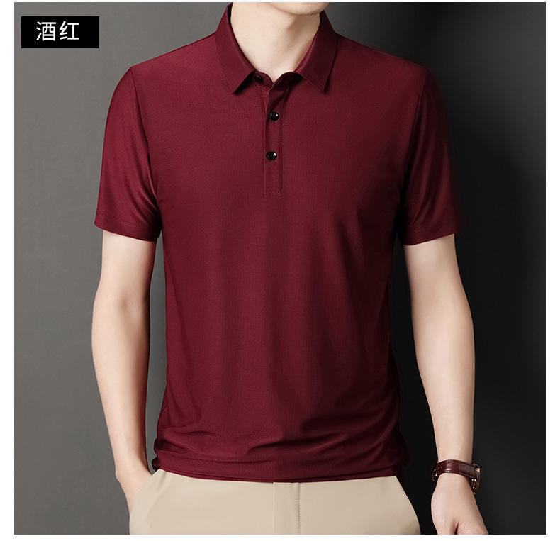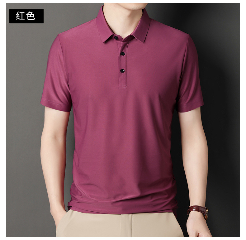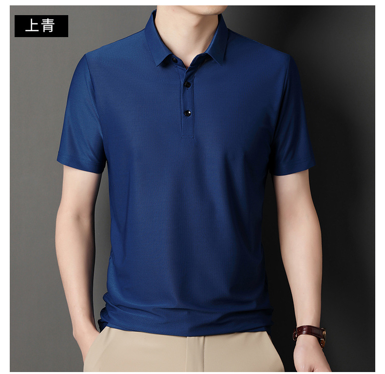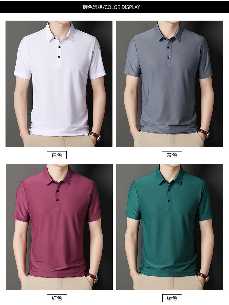 남자 중년 탄성 빠른 건조 여름 느슨한 반팔 비 다림질 슬림 핏 옷깃 폴로 셔츠 하이 퀄리티 올 매치 캐주얼
