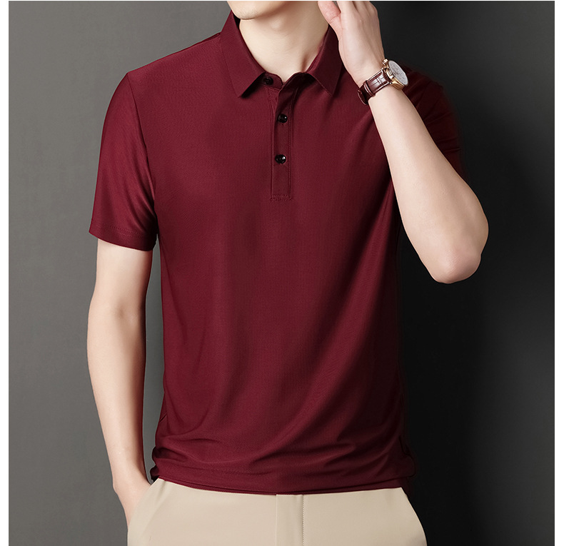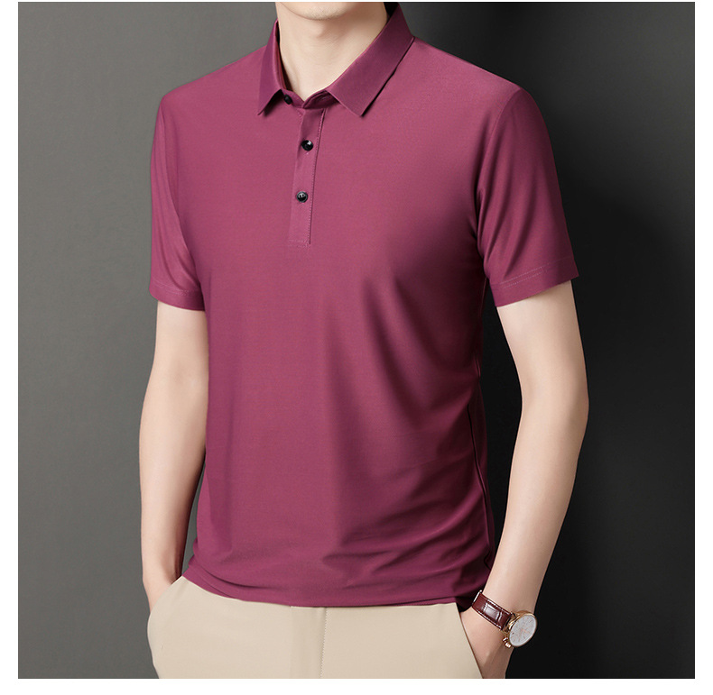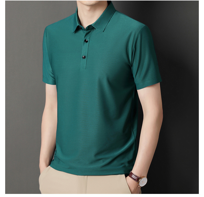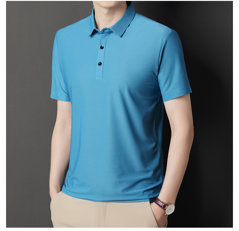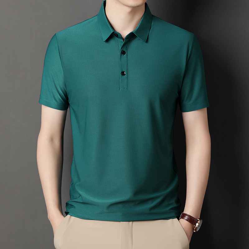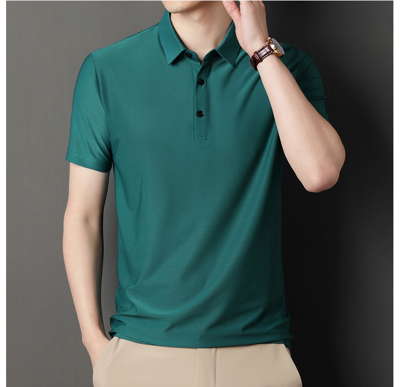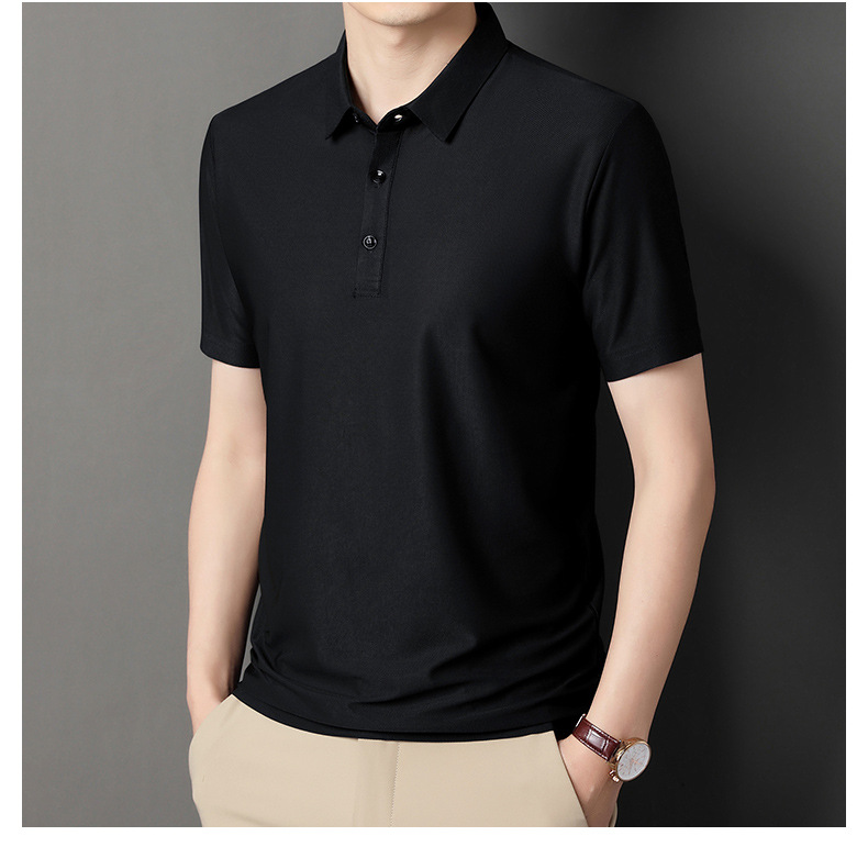 남자 중년 탄성 빠른 건조 여름 느슨한 반팔 비 다림질 슬림 핏 옷깃 폴로 셔츠 하이 퀄리티 올 매치 캐주얼