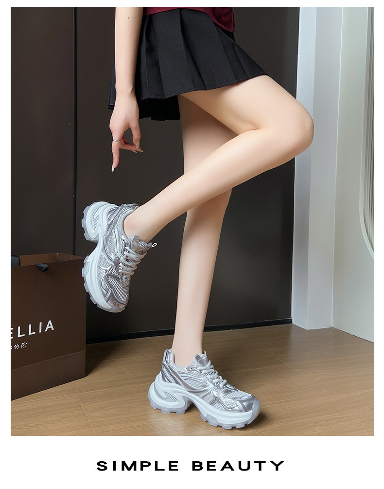 여성용 아빠 신발 2025년 신상 여름 얇은 통기성 메쉬 다용도 얇은 두꺼운 밑창 캐주얼 러닝 운동화스토어 가기
