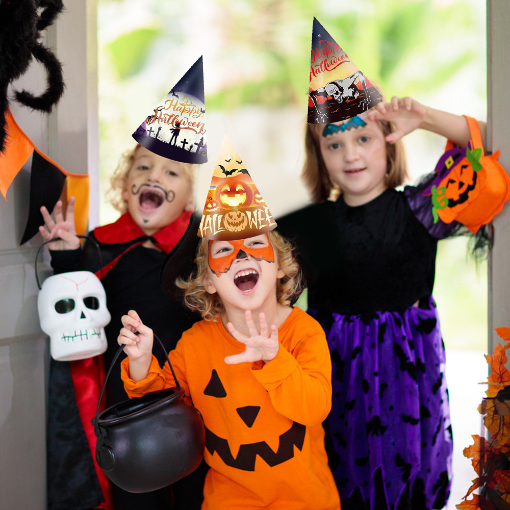 국경 간 새로운 할로윈 모자 장식 소품 어린이 성인 종이 삼각형 모자 사진 재미있는 파티 용품스토어 가기