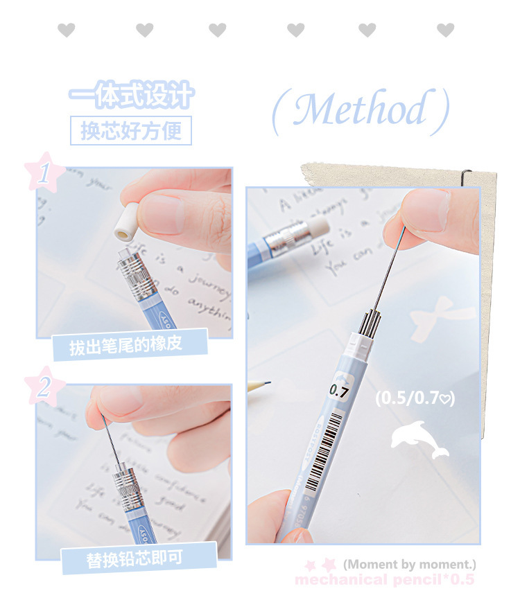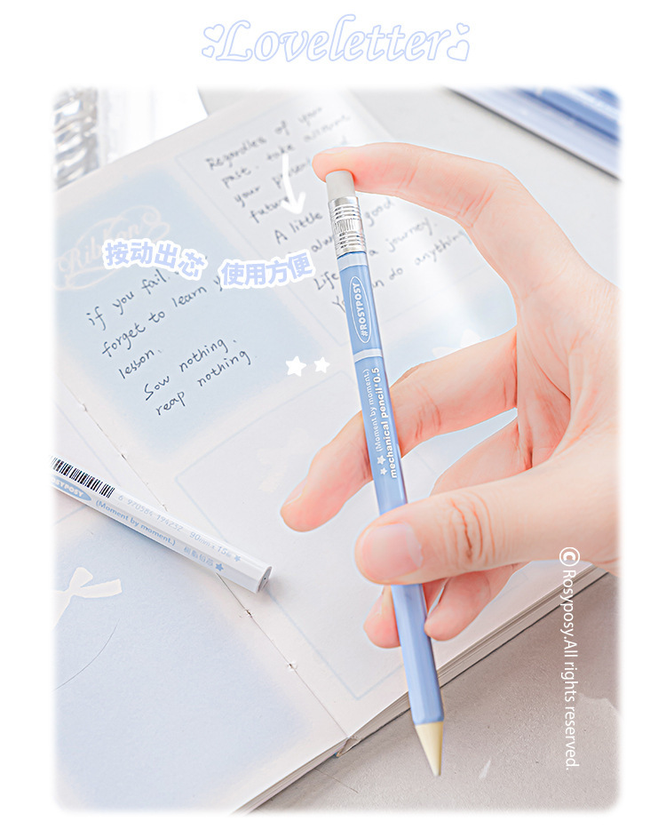 RosyPosy 소프트 크림 연속 코어 학생 자동 리드 세트 재사용 가능한 코어 고무 푸시 연필