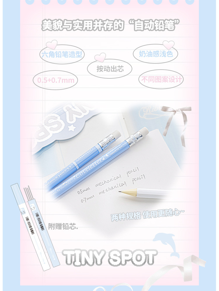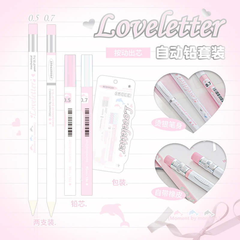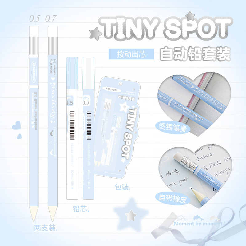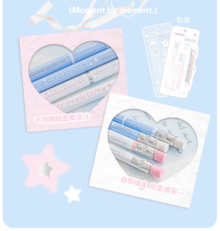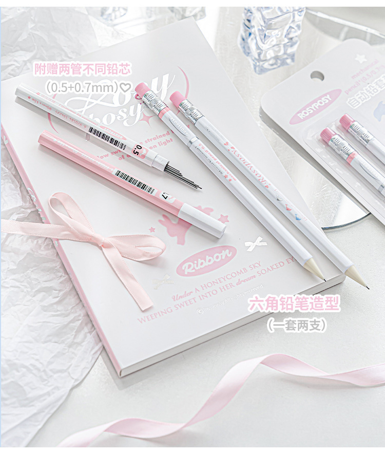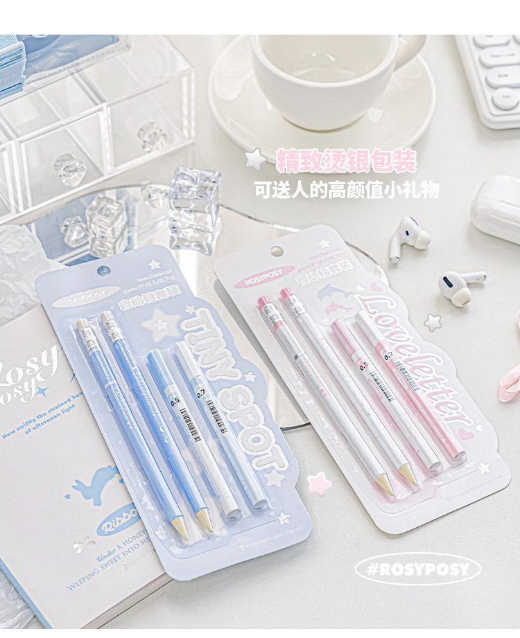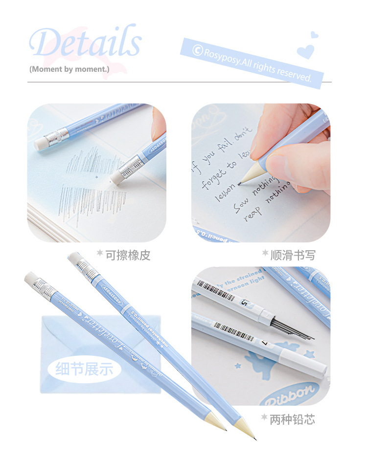 RosyPosy 소프트 크림 연속 코어 학생 자동 리드 세트 재사용 가능한 코어 고무 푸시 연필스토어 가기
