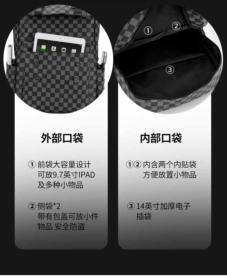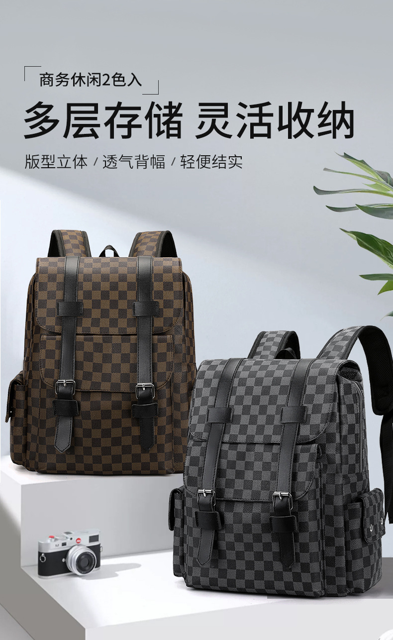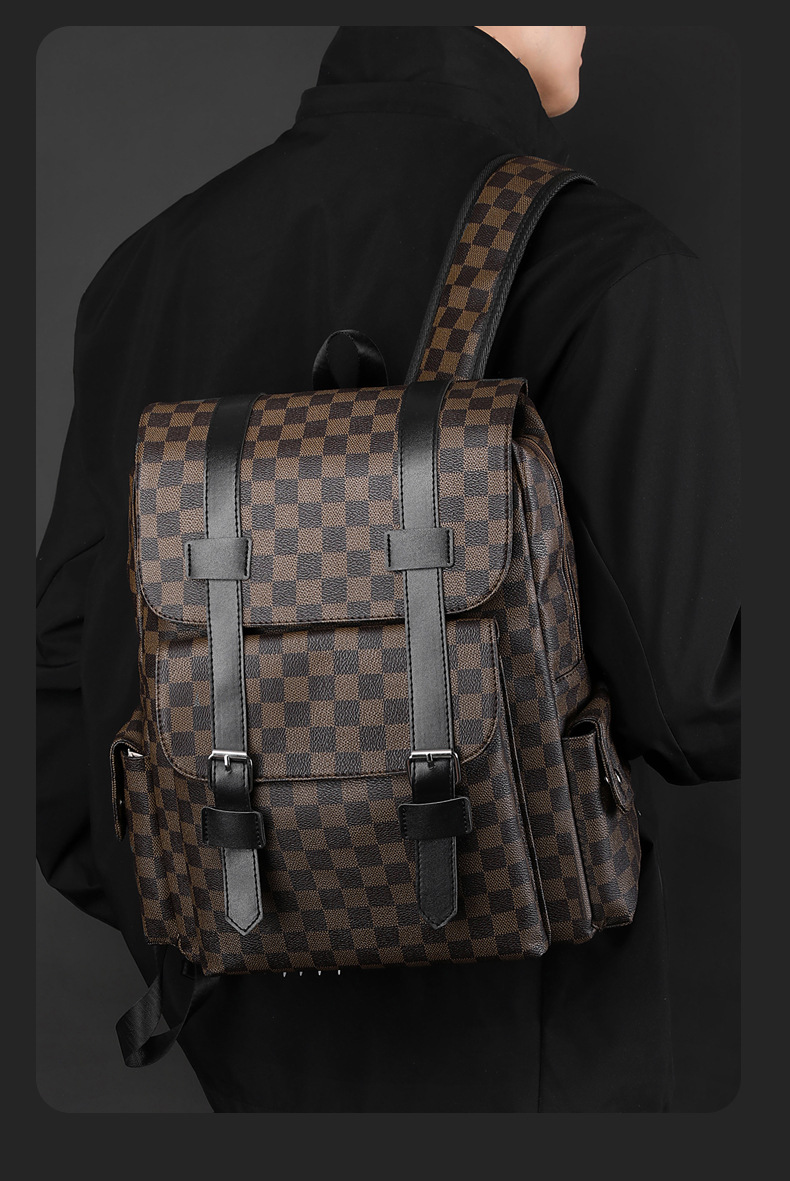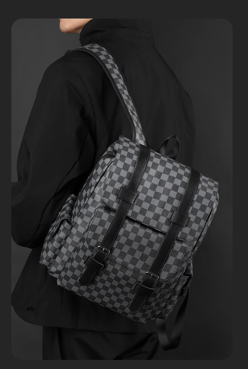 배낭 남성 유럽과 미국 패션 격자 무늬 배낭 유행 브랜드 대용량 여행 가방 캐주얼 학생 학교 가방 컴퓨터 가방스토어 가기