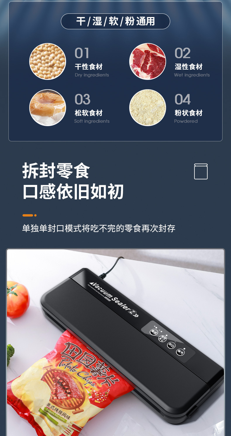 진공 밀봉 기계 식품 신선한 유지 기계 건조하고 젖은 오일 파우더 가정용 자동 작은 진공 밀봉 올인원 기계스토어 가기