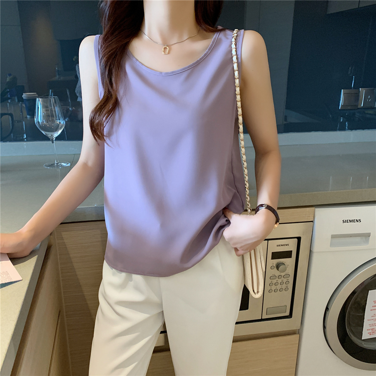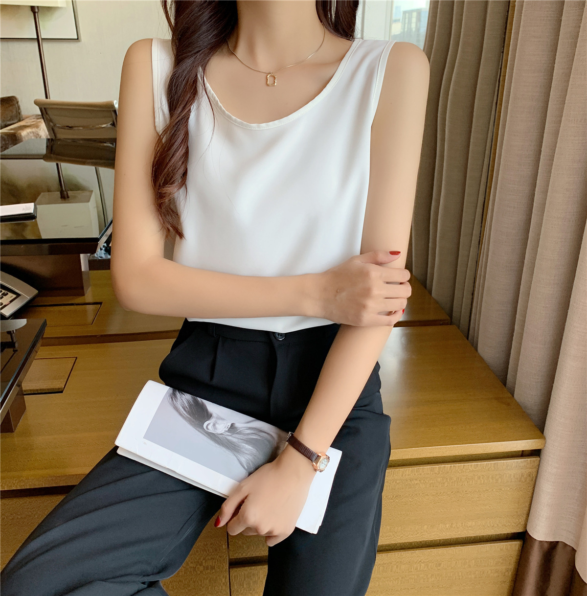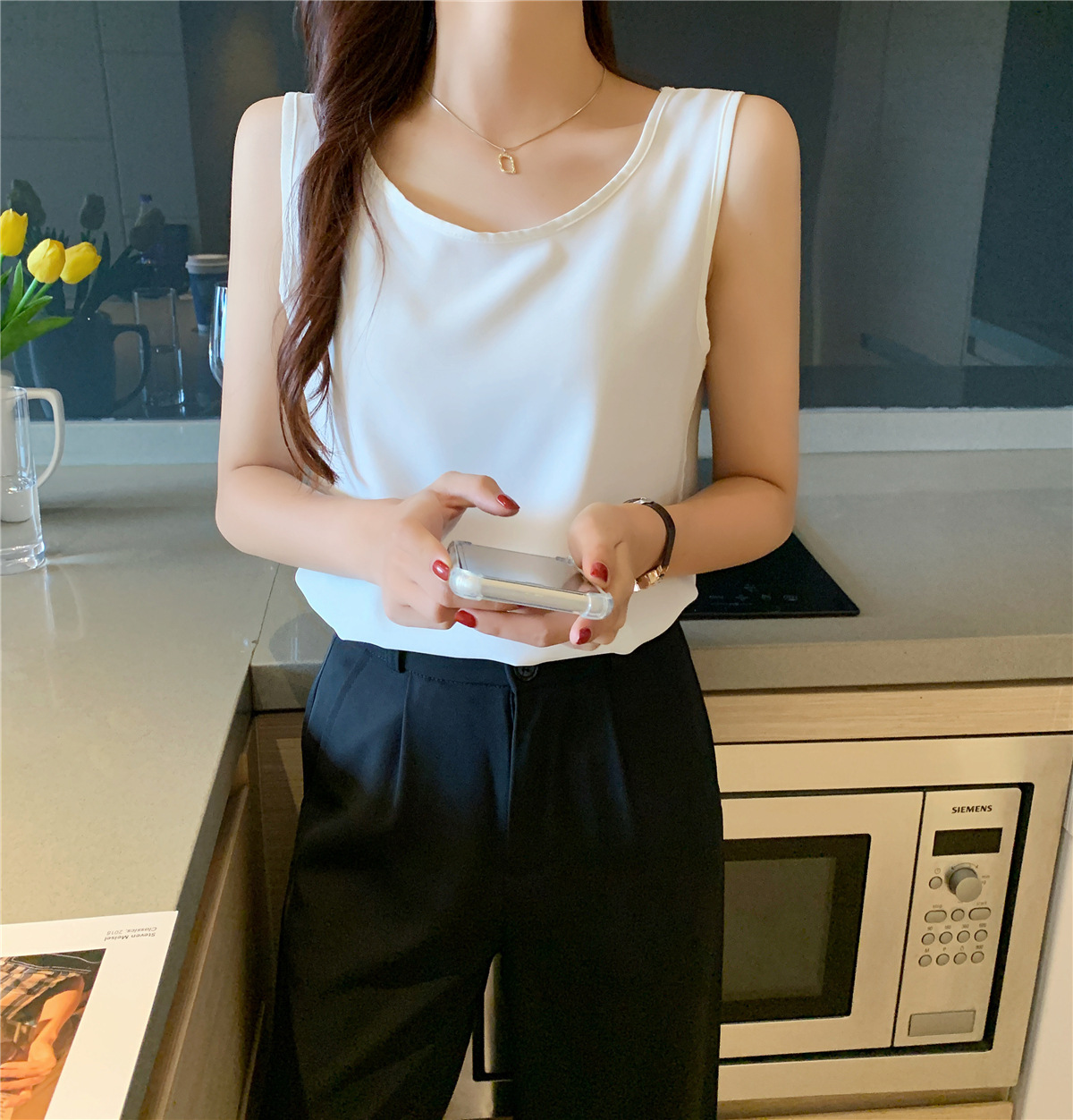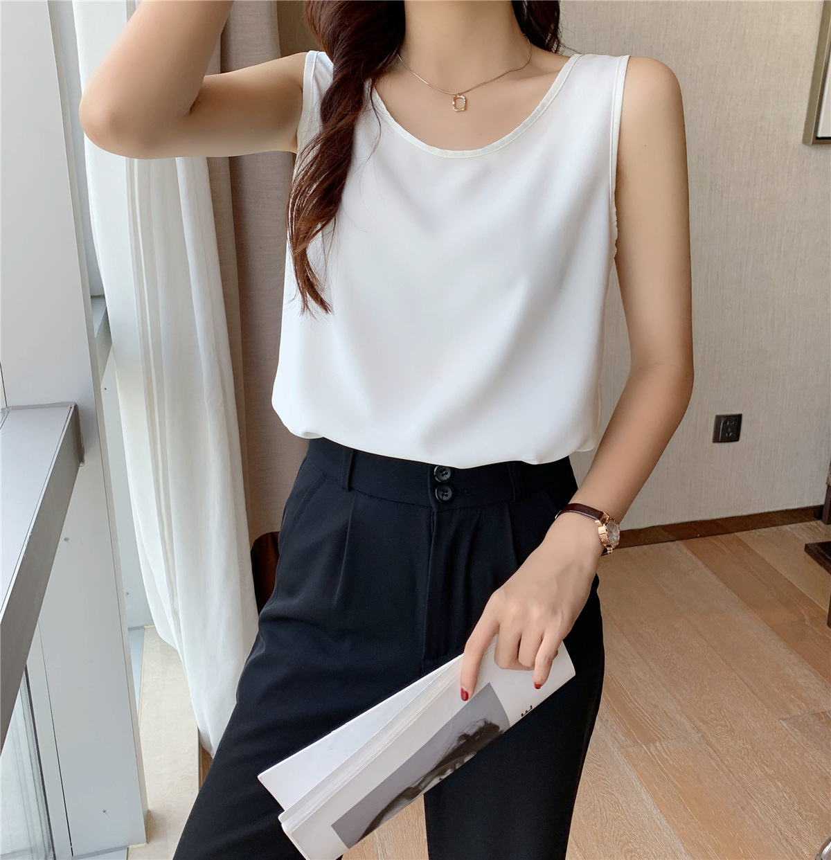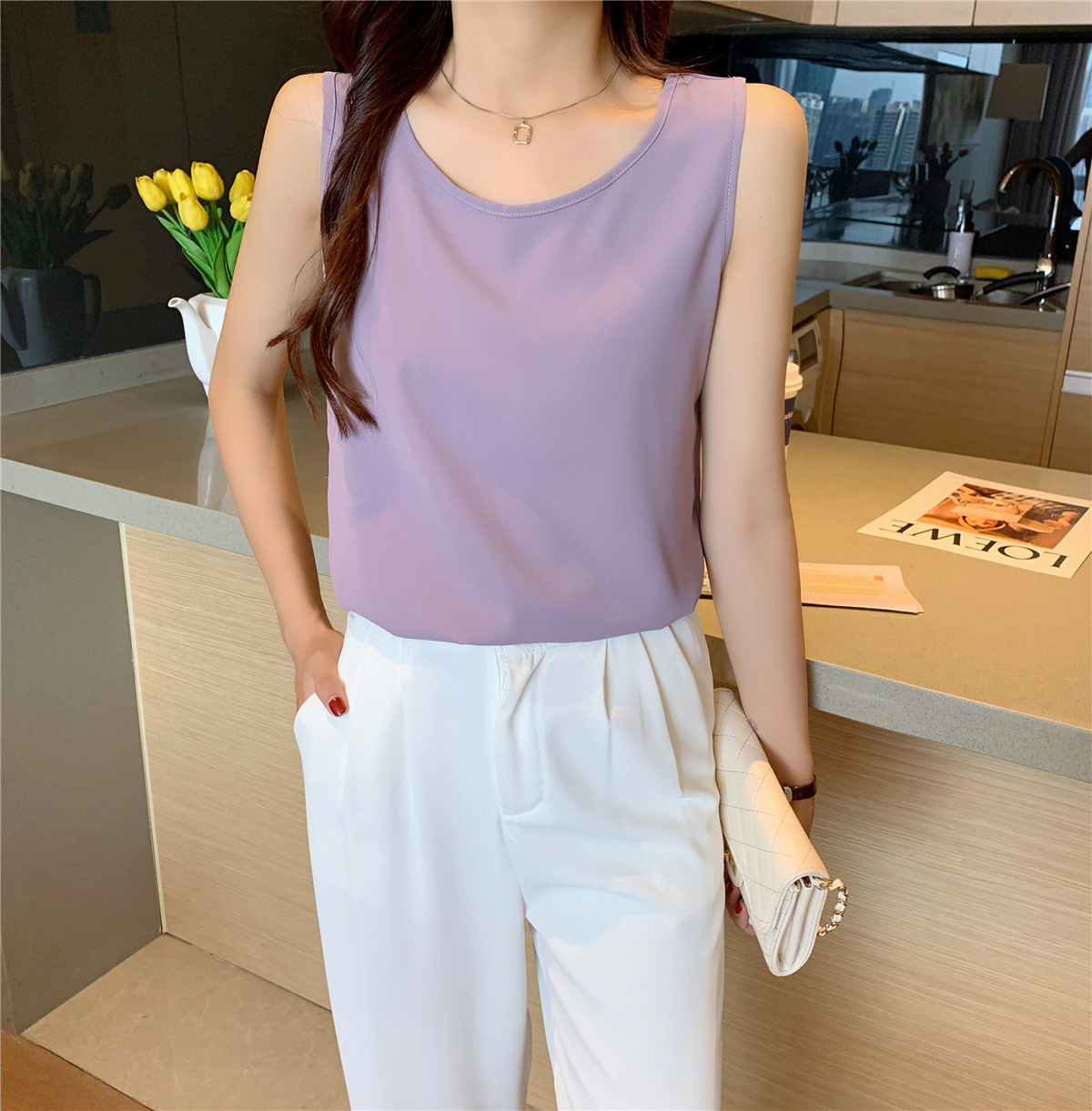 리얼 샷 2024 시폰 카미 솔 여성용 루즈 크루 넥 아우터베이스 셔츠 작은 세트 내부 민소매 탑스토어 가기
