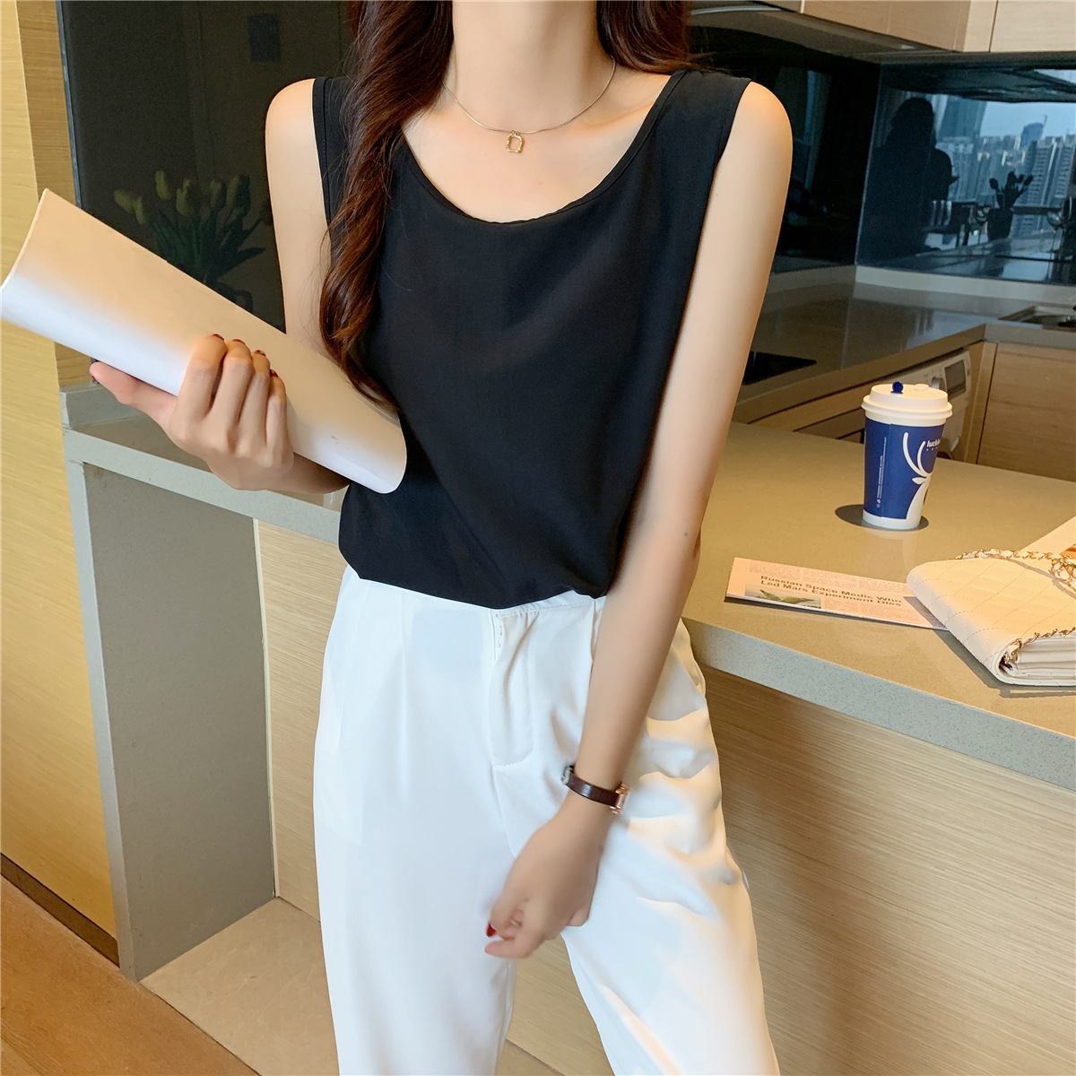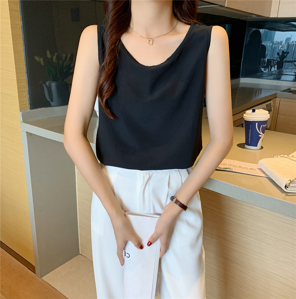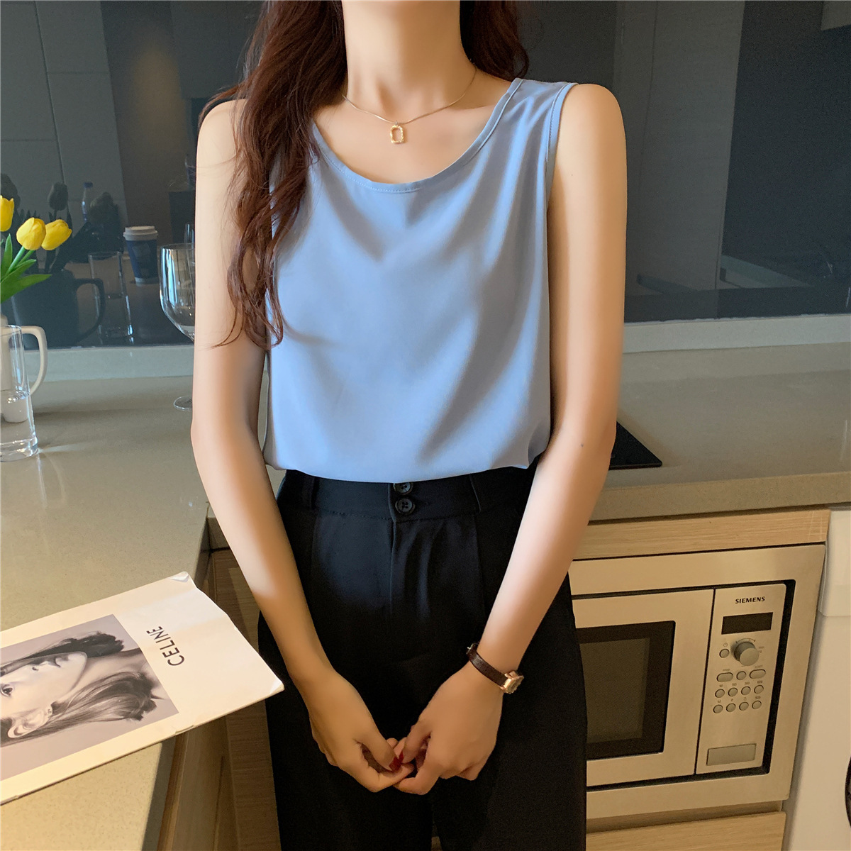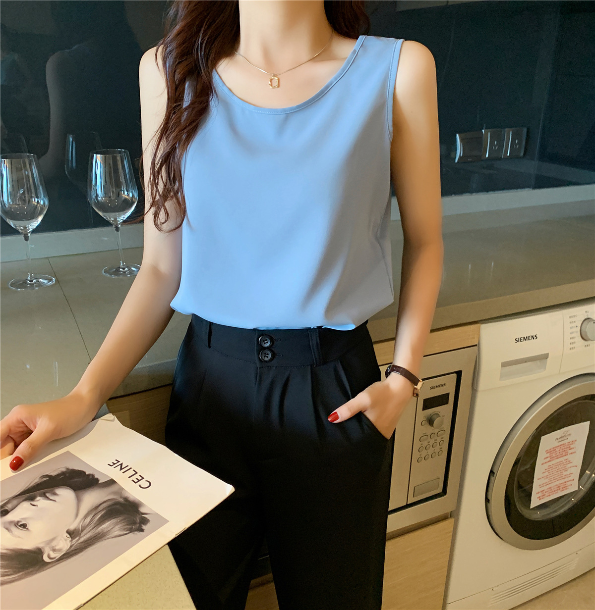 리얼 샷 2024 시폰 카미 솔 여성용 루즈 크루 넥 아우터베이스 셔츠 작은 세트 내부 민소매 탑스토어 가기