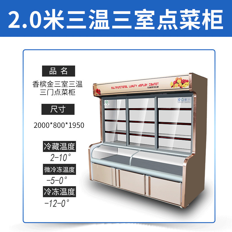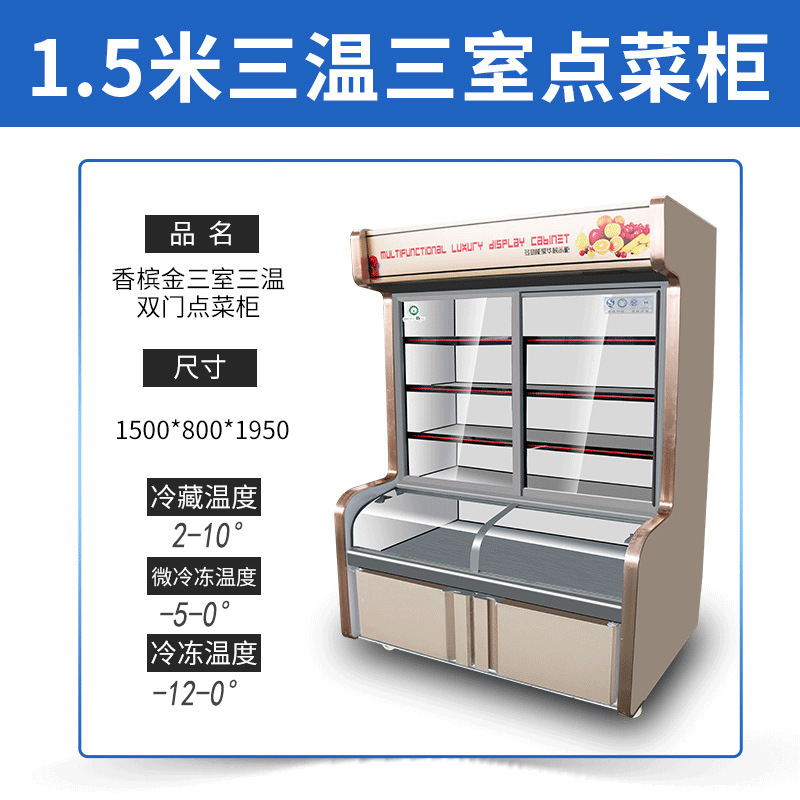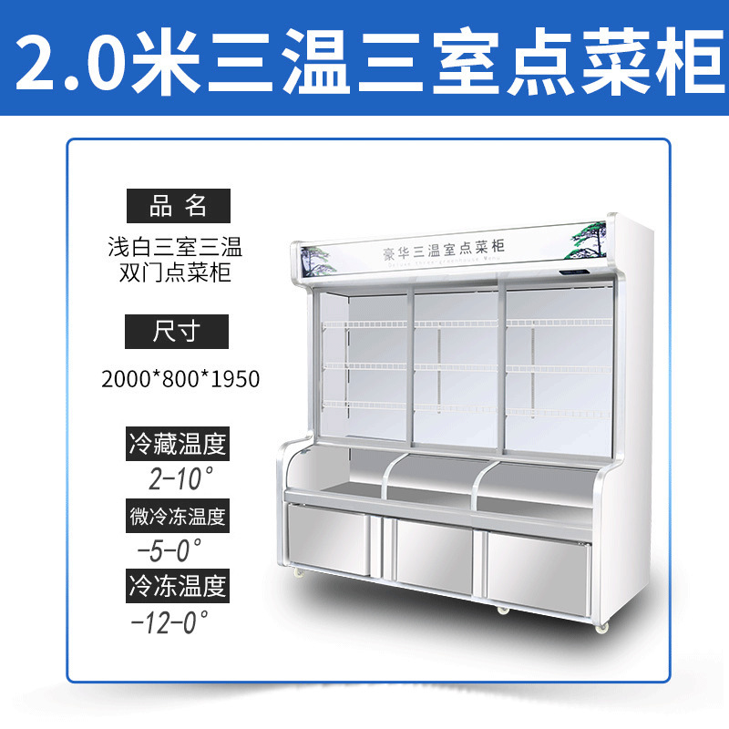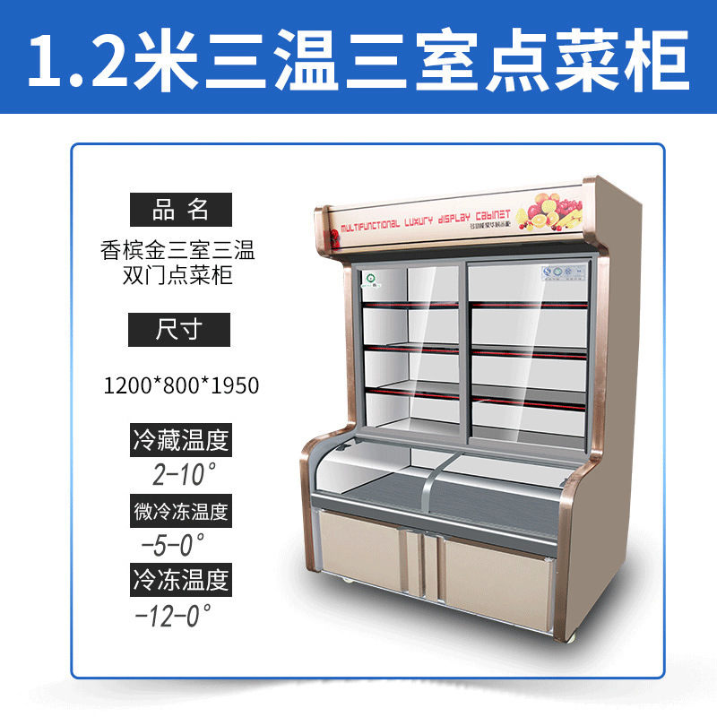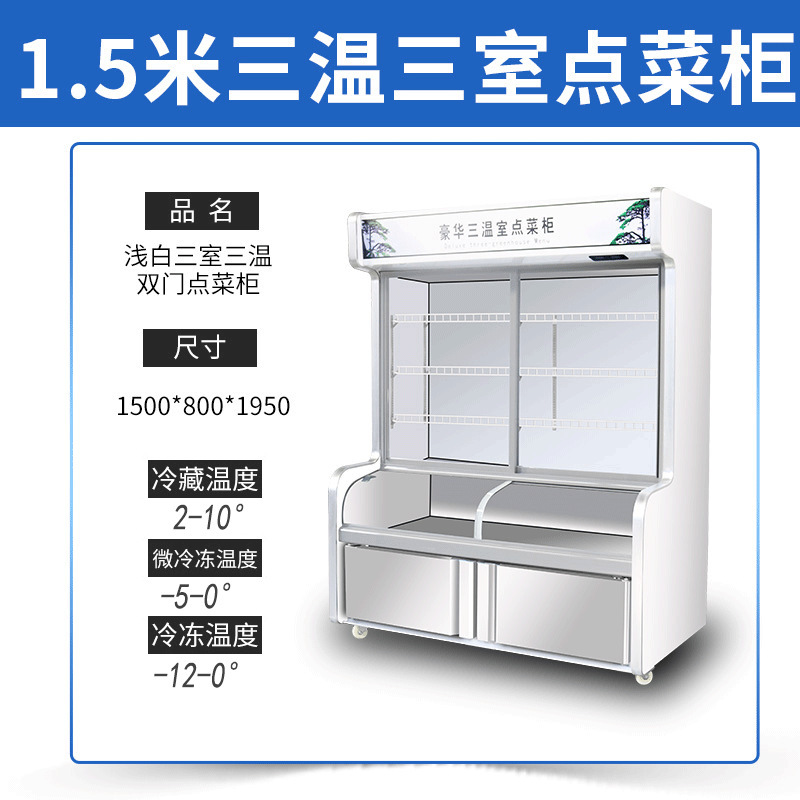 일품 캐비닛 요리 레스토랑 바베큐 매운 튀김 문자열 냉장고 신선한 보관 캐비닛 냉동 3 온도 상업용 디스플레이 캐비닛스토어 가기