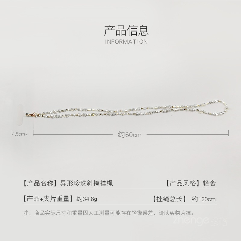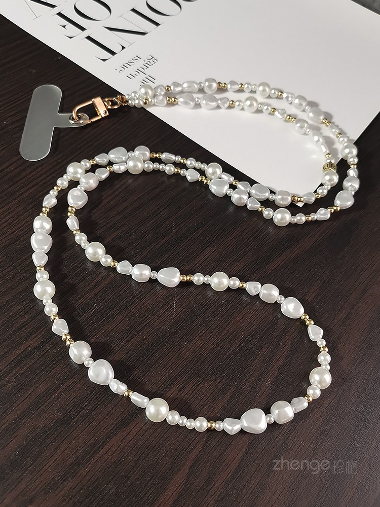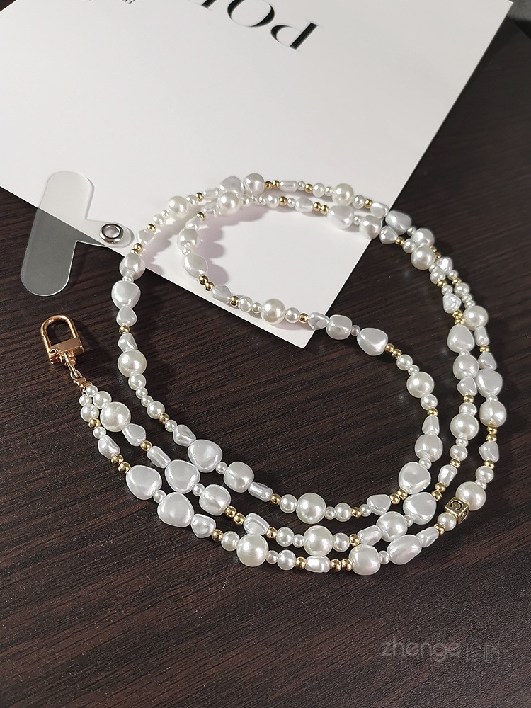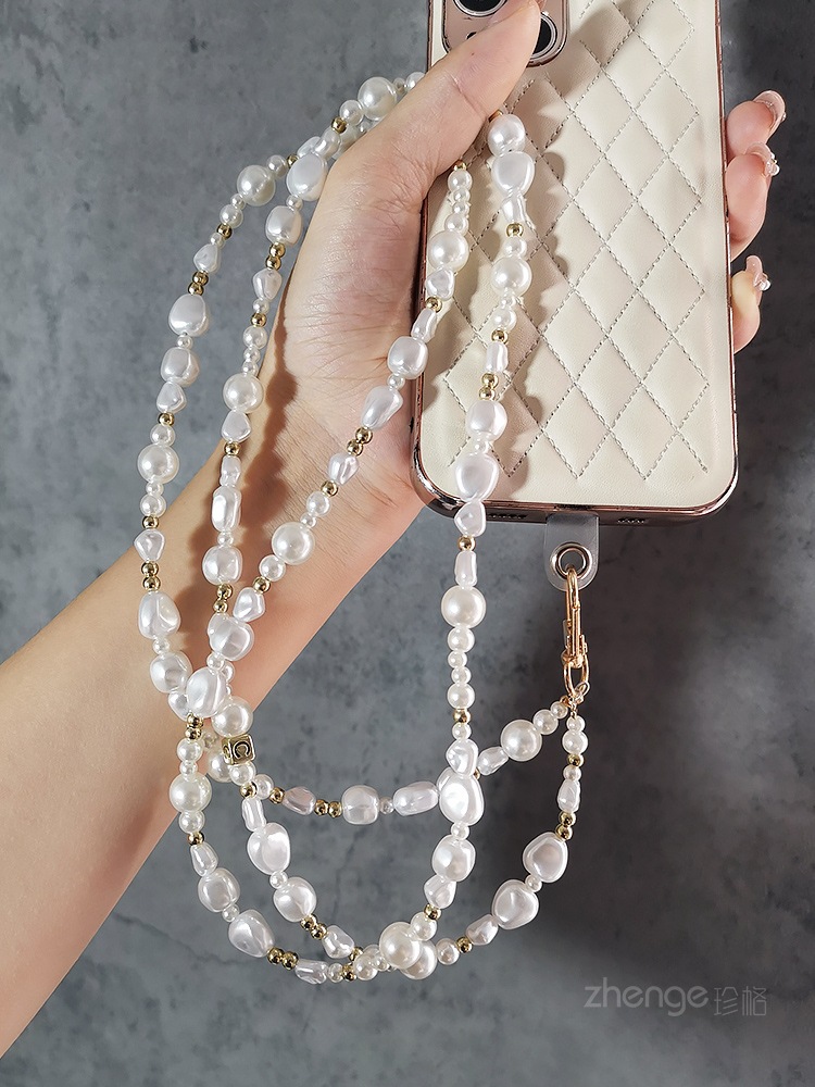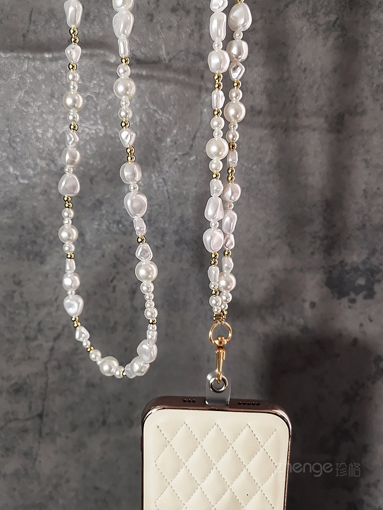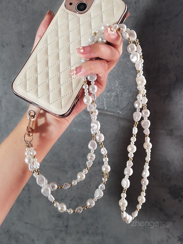 진주 크로스 바디 교수형 체인 여성 Ins 야외 여행 등산 패션 백 체인 휴대 전화 끈 작은 샤넬 스타일 수제 체인스토어 가기