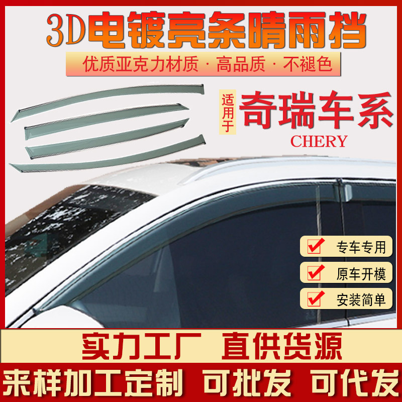 本公司雨挡主要为:3D电镀亮边晴雨挡,专车专用,车型齐全。