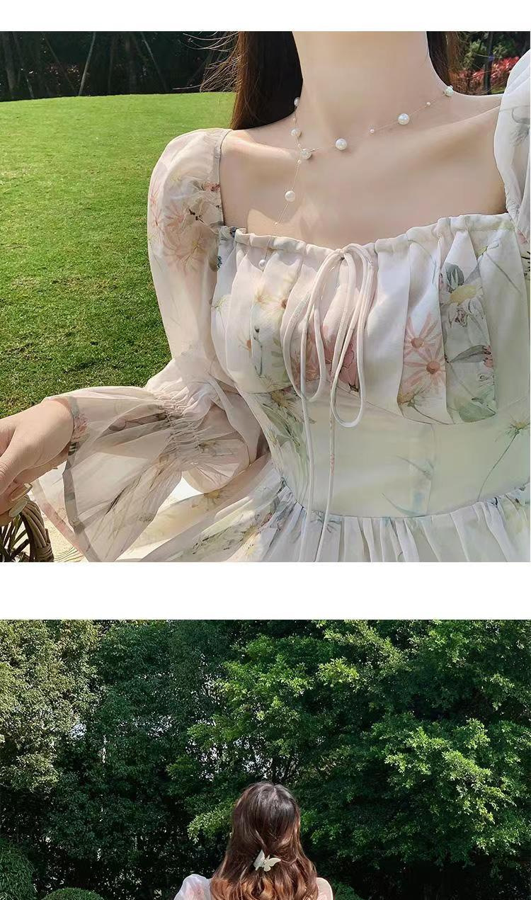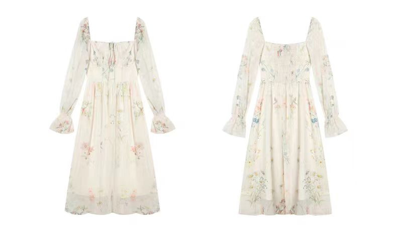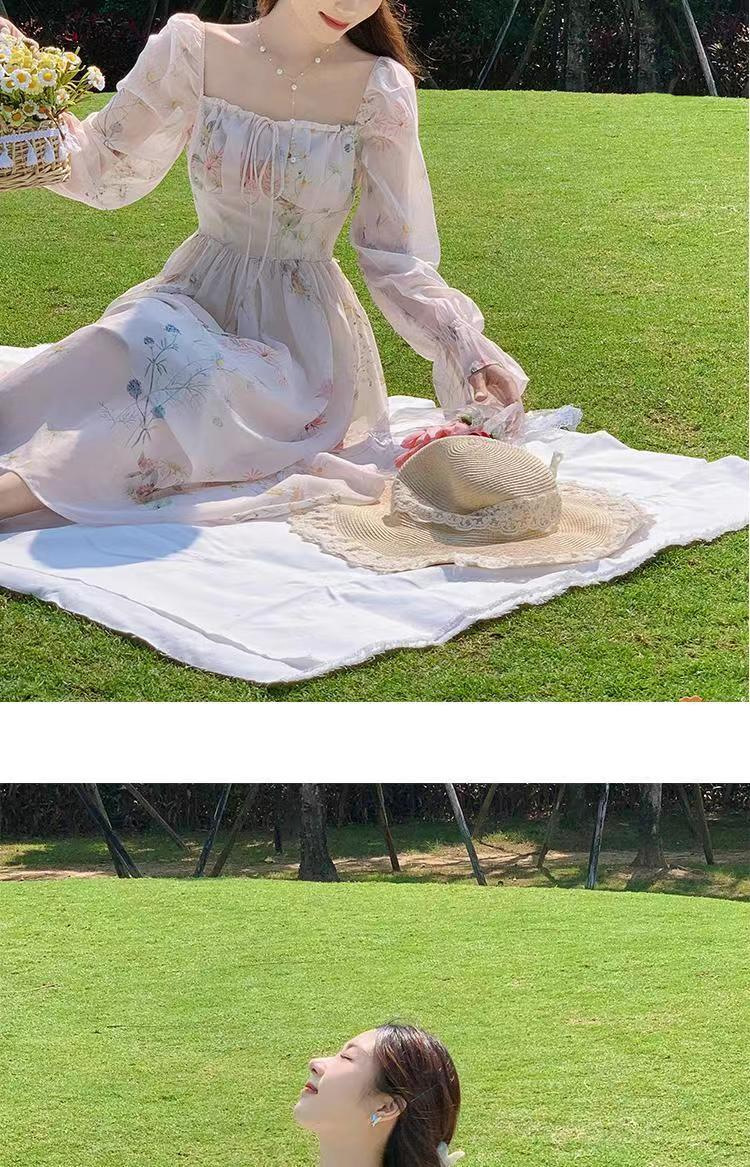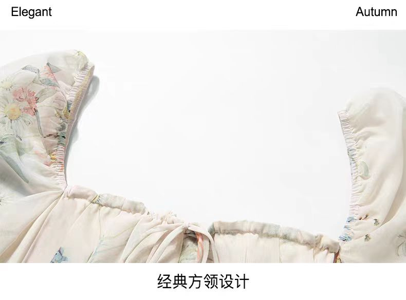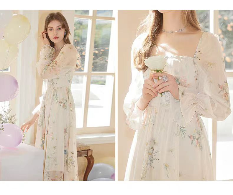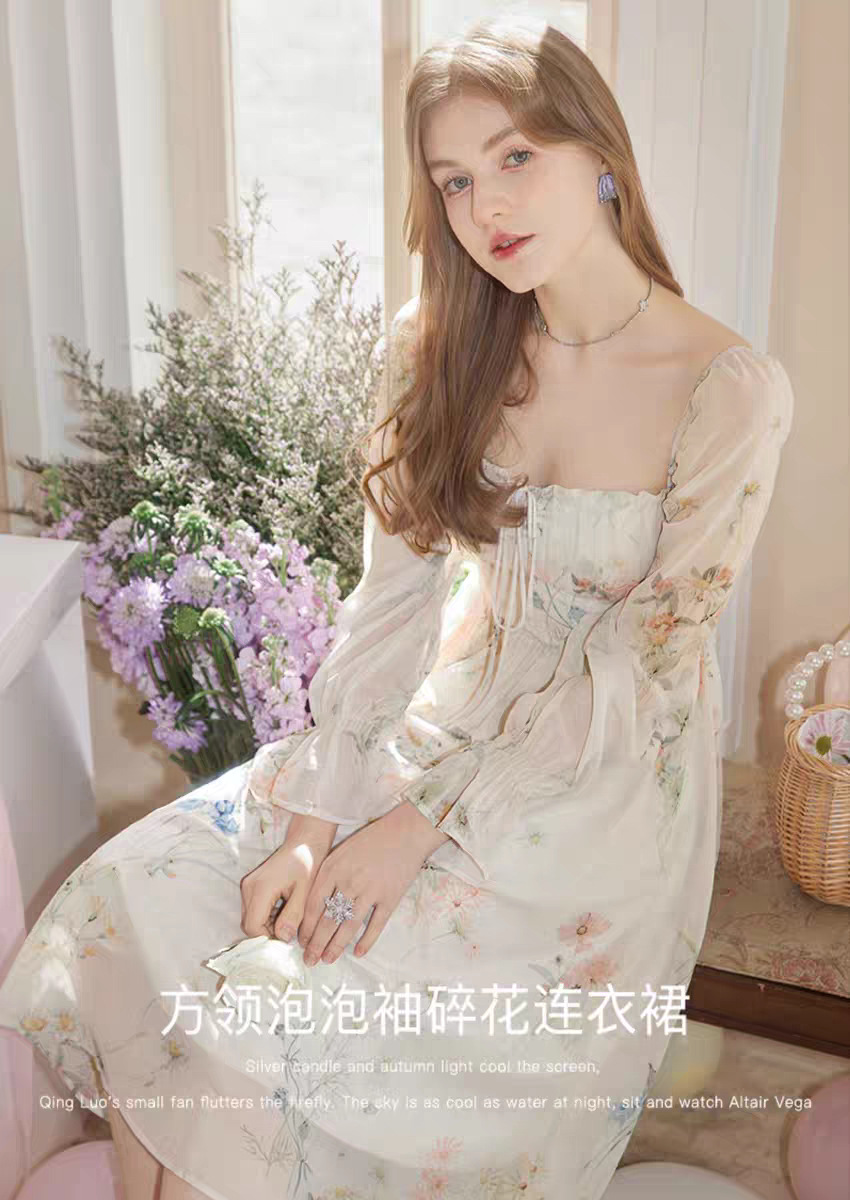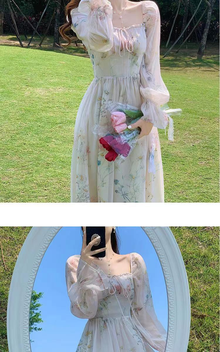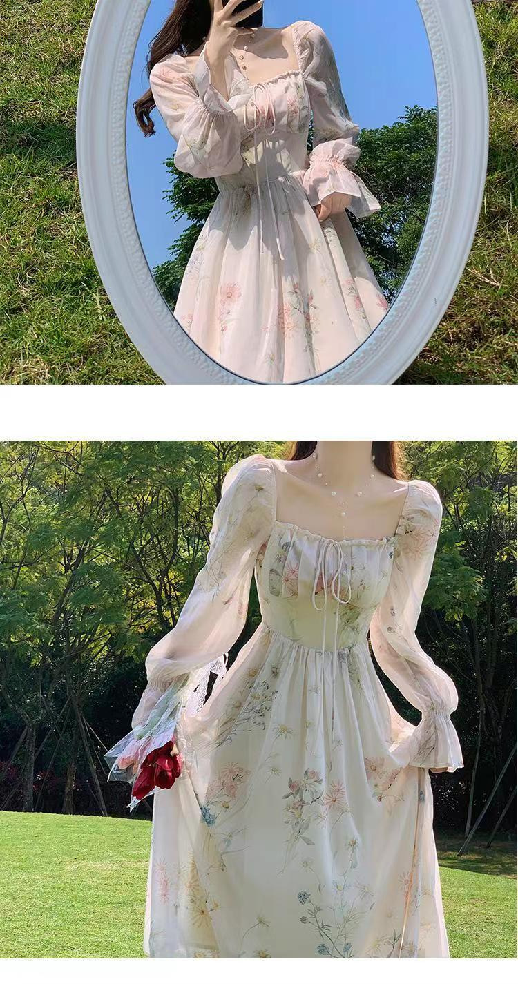 프렌치 티 브레이크 드레스 2024 봄과 여름 새로운 랜턴 슬리브 기질 요정 롱 스커트 허리 꽃 드레스 여성스토어 가기