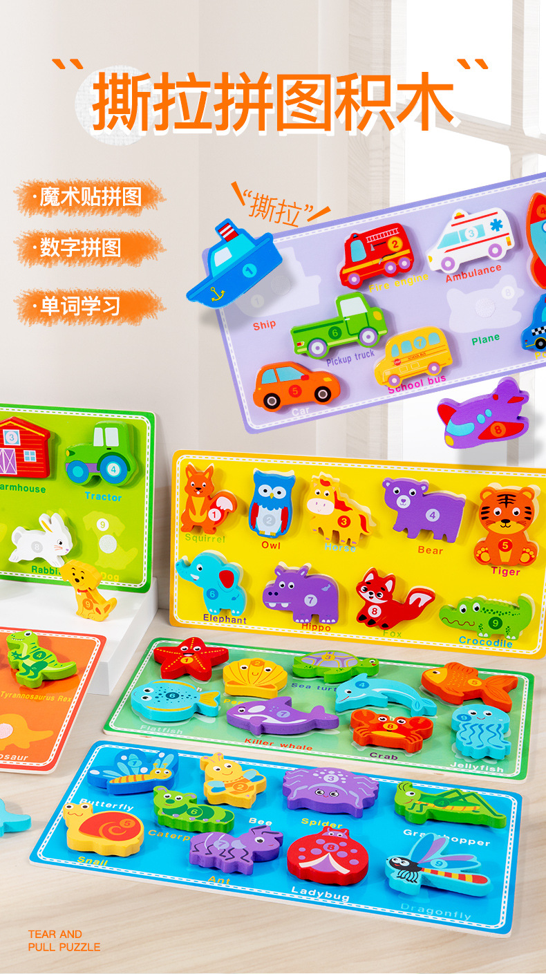 국경 간 후크 및 루프 3 차원 찢어짐 퍼즐 나무 큰 입자 매칭 빌딩 블록 어린이 조기 교육 퍼즐 장난감스토어 가기