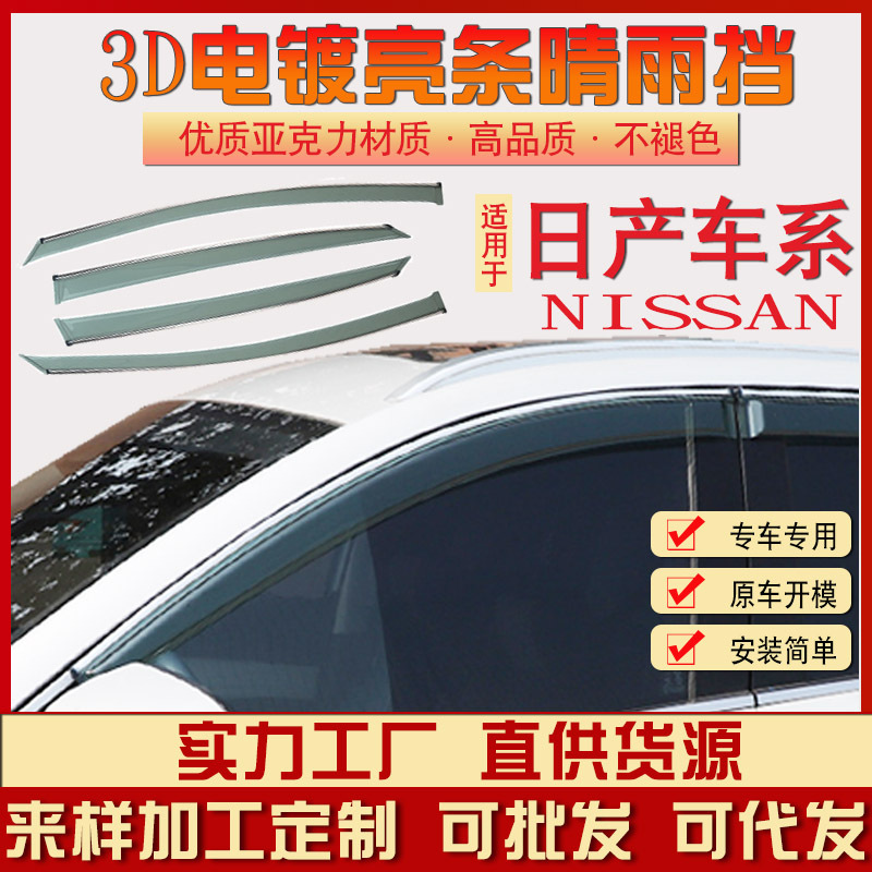 本公司雨挡主要为:3D电镀亮边晴雨挡,专车专用,车型齐全。