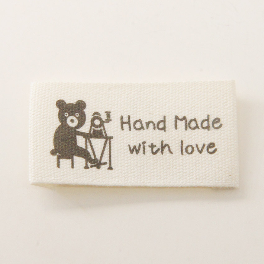 순수한면 재고 수제 천 라벨 접이식 검은 곰 재봉틀 꽃 레이스 라벨 액세서리 재봉 DIY스토어 가기
