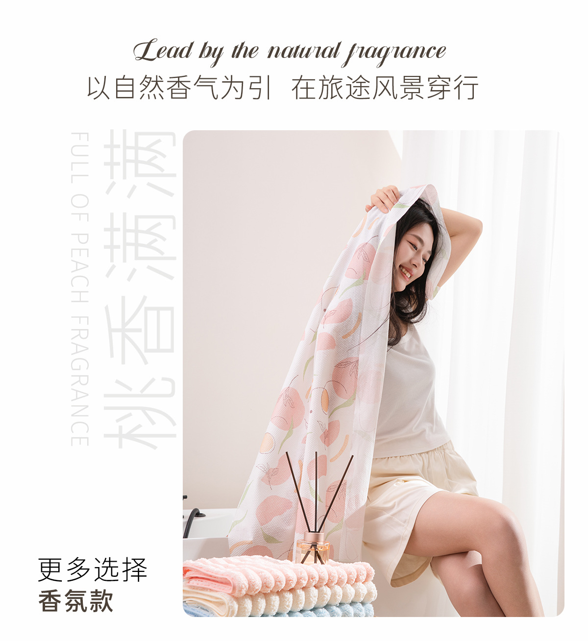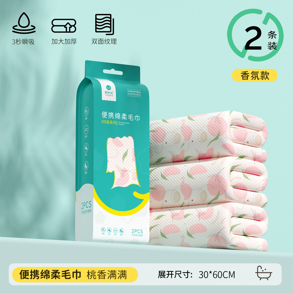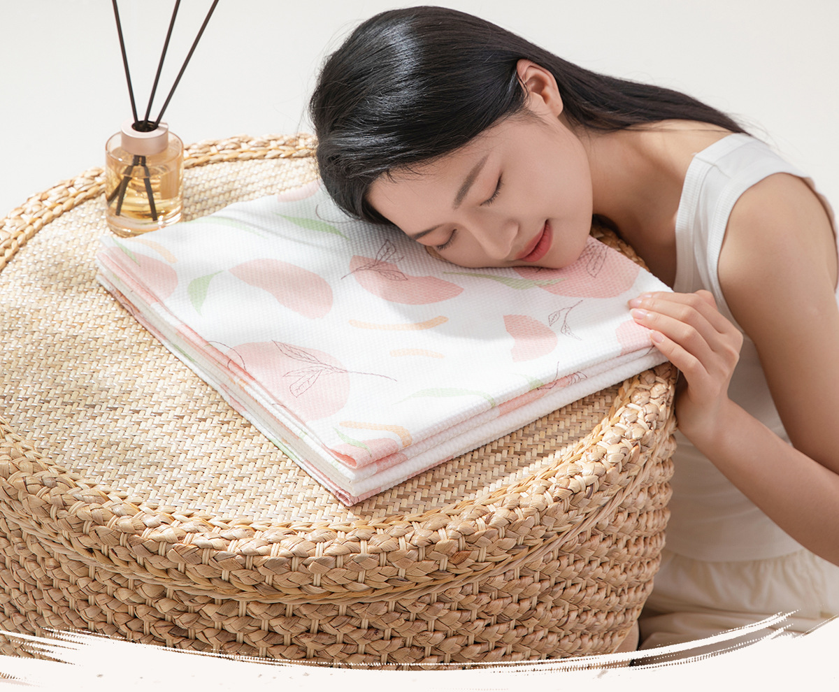 • [복숭아 향기] 복숭아 향수는 2 개의 인쇄 된 수건으로 가득합니다. 30*60cm