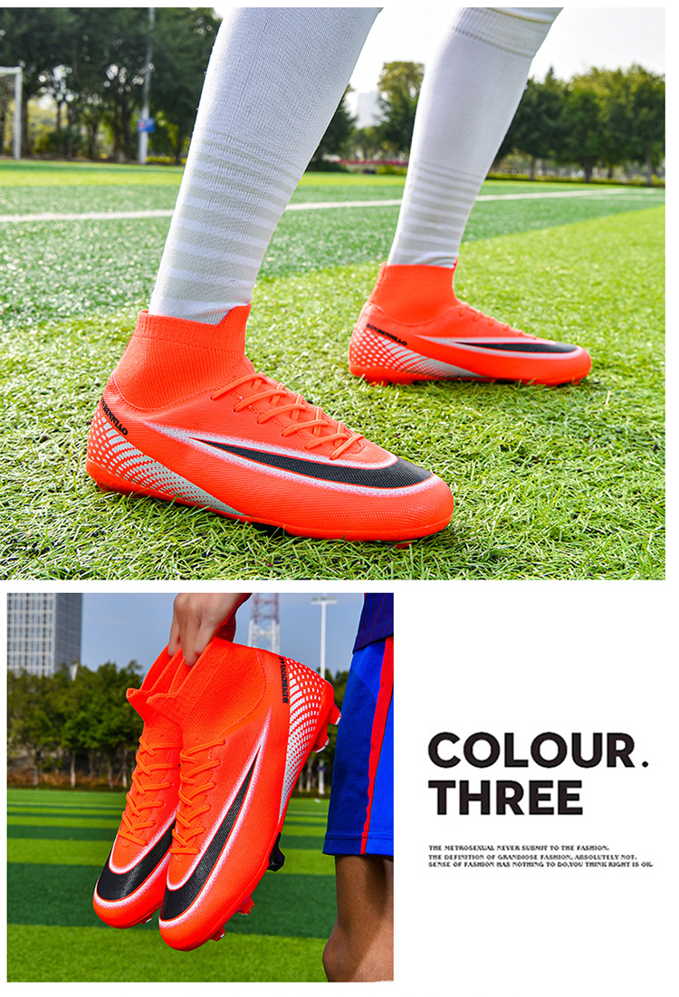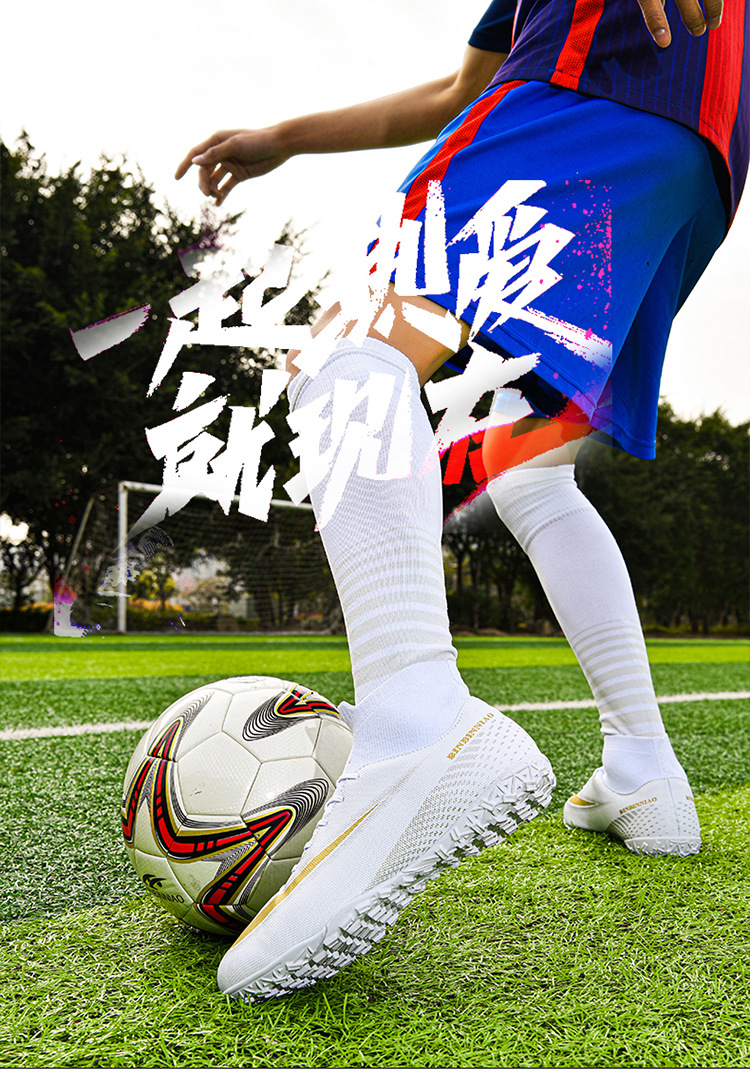 크로스-국경 하이 탑 축구 신발 도매 청소년 성인 클럽 실내 잔디 스포츠 미끄럼 방지 축구 신발