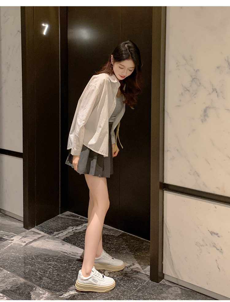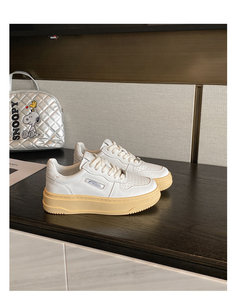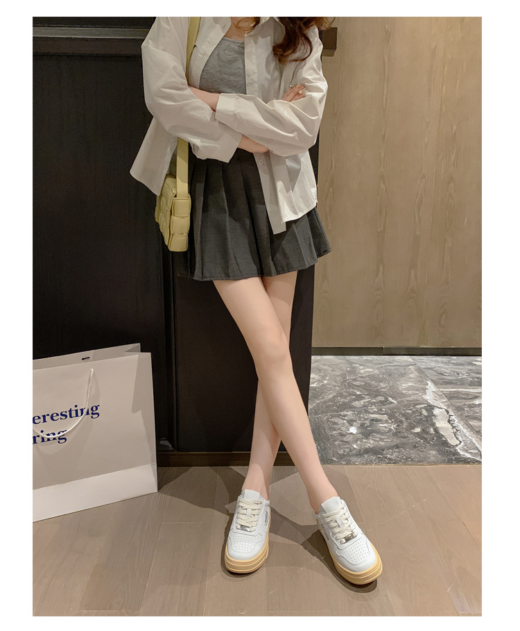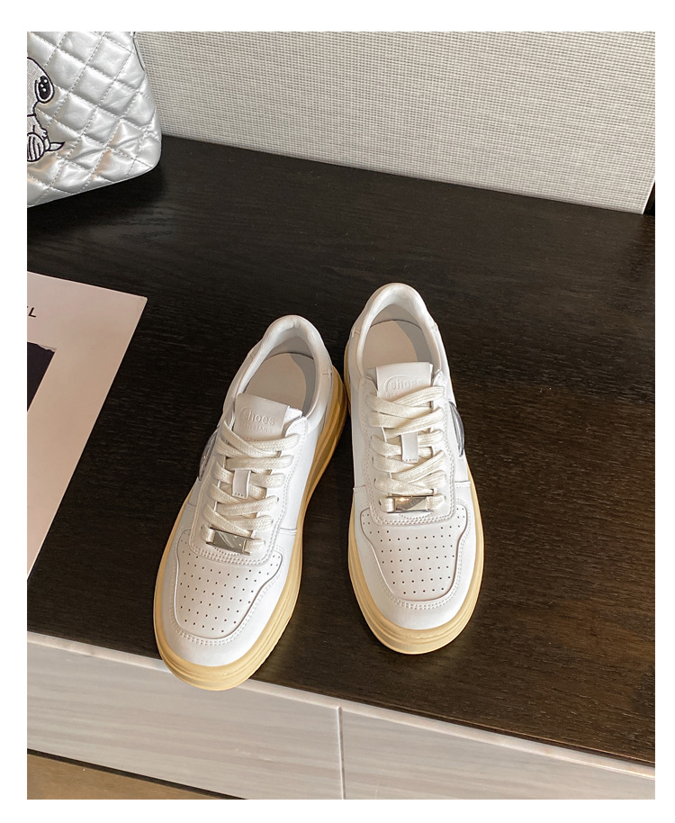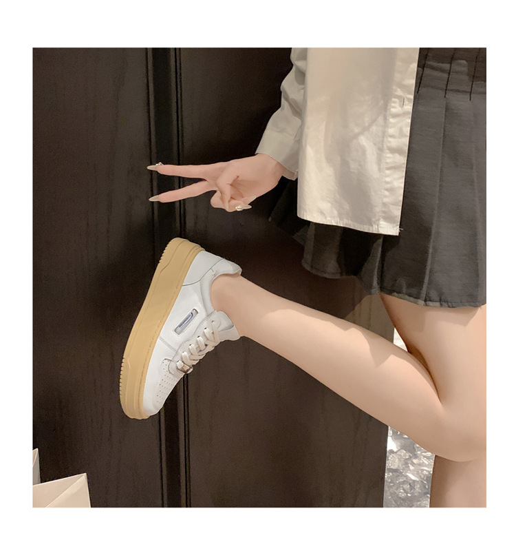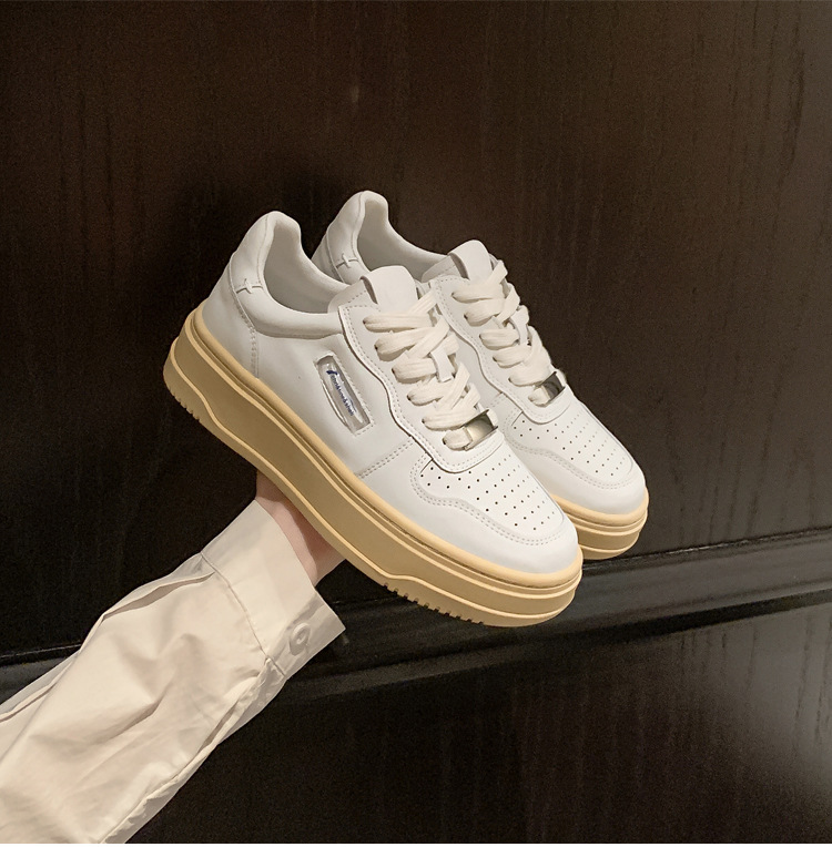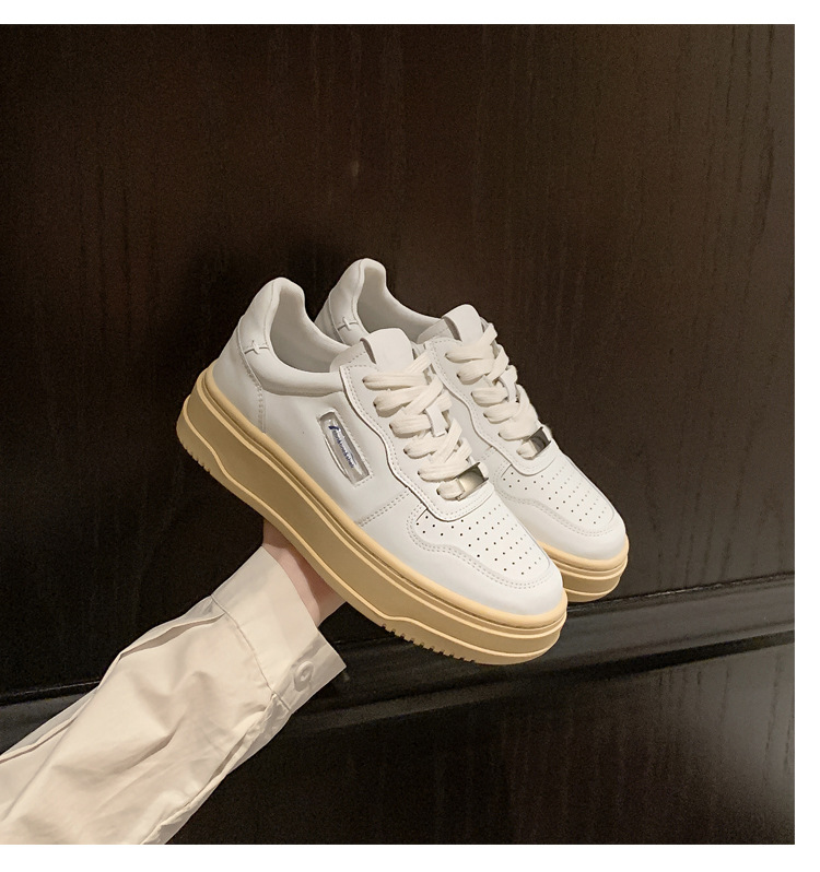 즉시 배송 5cm 버전~ 한국산 천연 가죽 두꺼운 밑창 키높이 캐주얼 운동화 여성용 화이트 슈즈 보드화스토어 가기