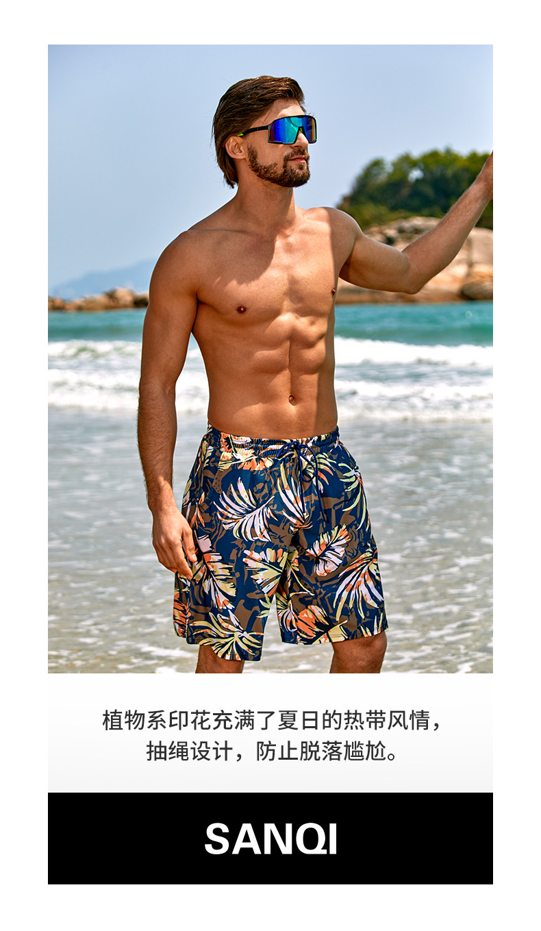 Sanqi Five Points Beach Pants 남자 2024 년 새로운 도착 방황 플러스 사이즈 빠른 건조 물 느슨한 휴가 수영 트렁크스토어 가기