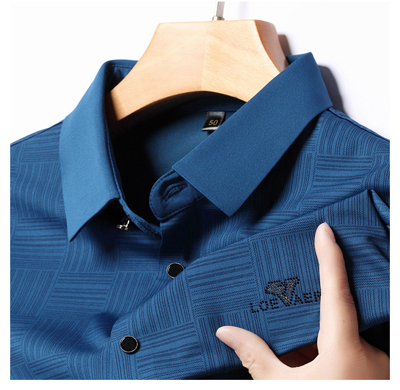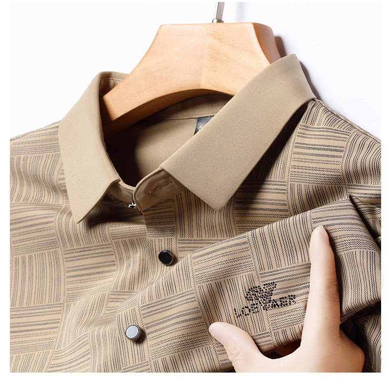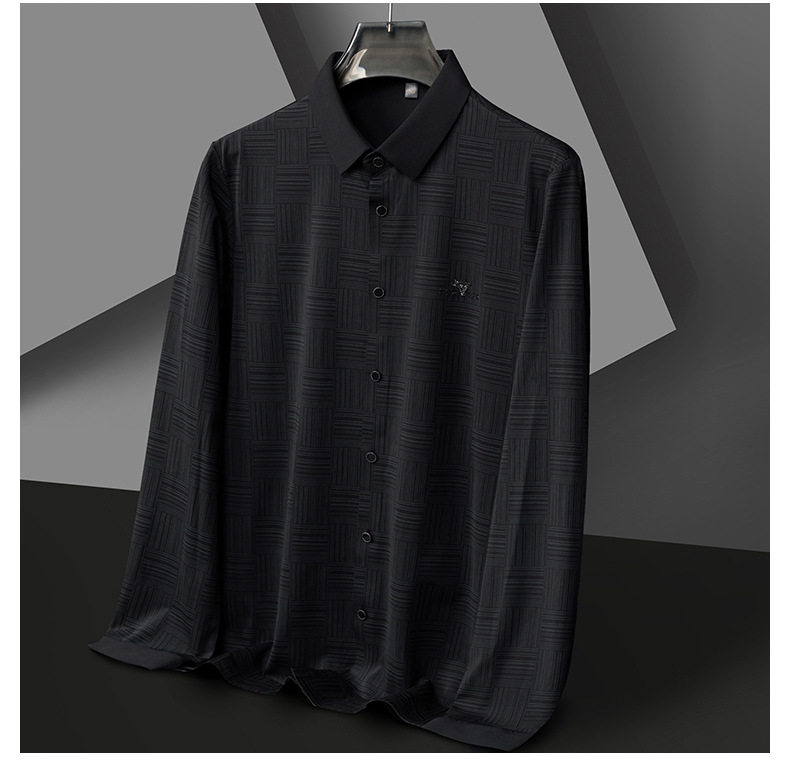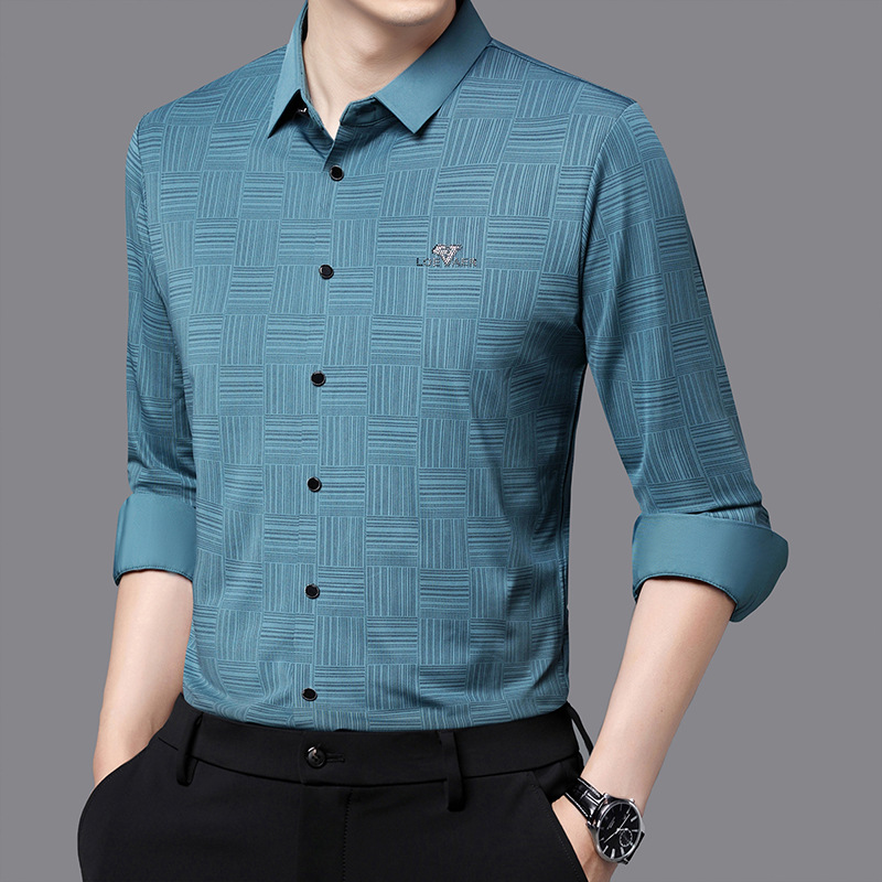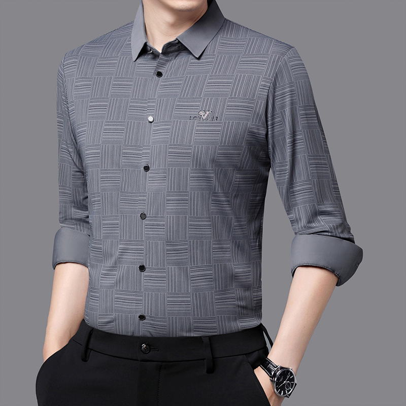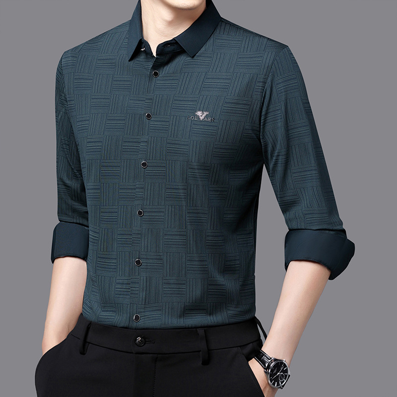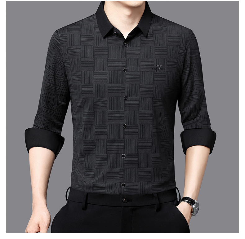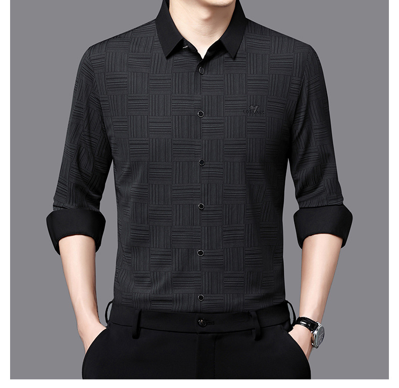 고급 남성 청소년 새로운 핫 드릴링 체크 무늬 셔츠 옷깃 긴 소매 봄과 가을 비즈니스 캐주얼 패션 아빠 셔츠 조수스토어 가기