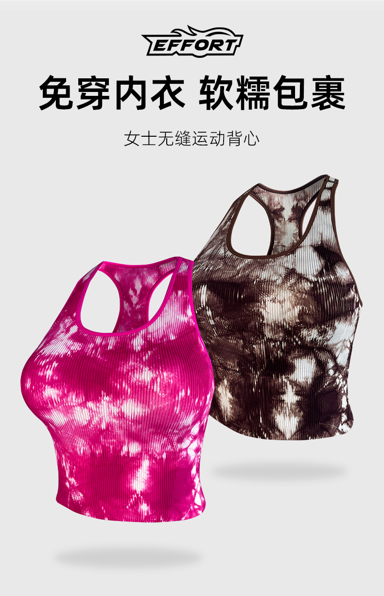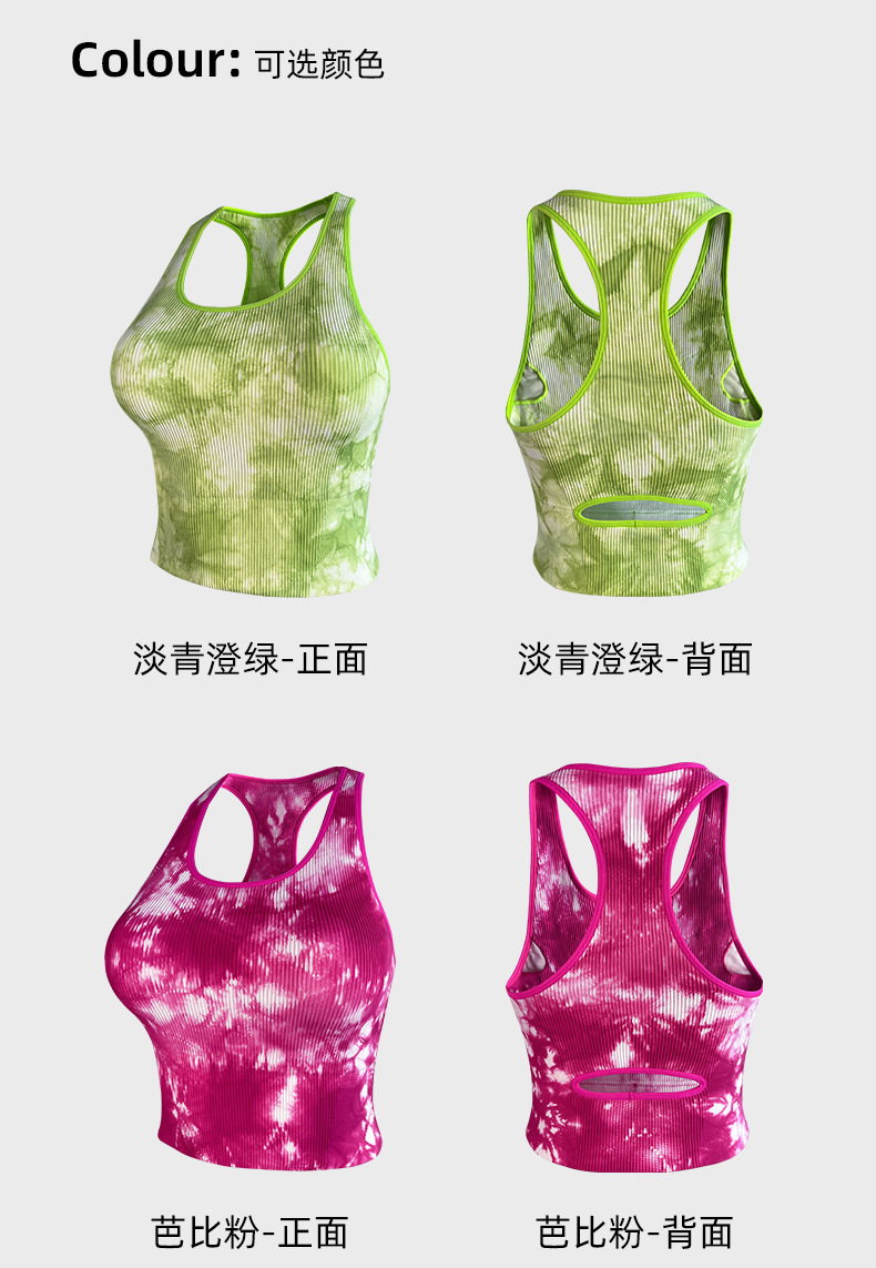 봄 및 여름 넥타이-염료 스포츠 조끼 가슴 패드 Cleat 요가 러닝은 여성을위한 원활한 브래지어 요가 조끼를 입을 수 있습니다.스토어 가기