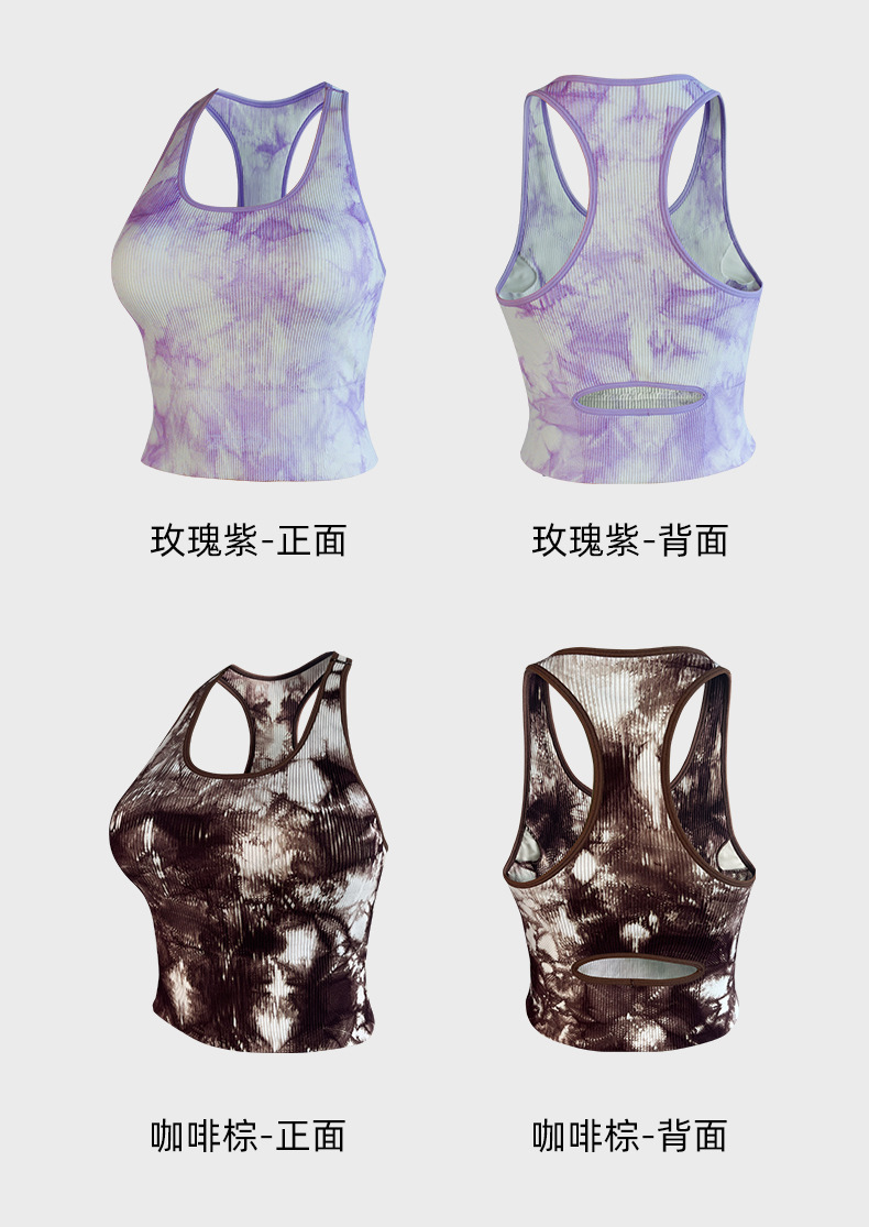 봄 및 여름 넥타이-염료 스포츠 조끼 가슴 패드 Cleat 요가 러닝은 여성을위한 원활한 브래지어 요가 조끼를 입을 수 있습니다.