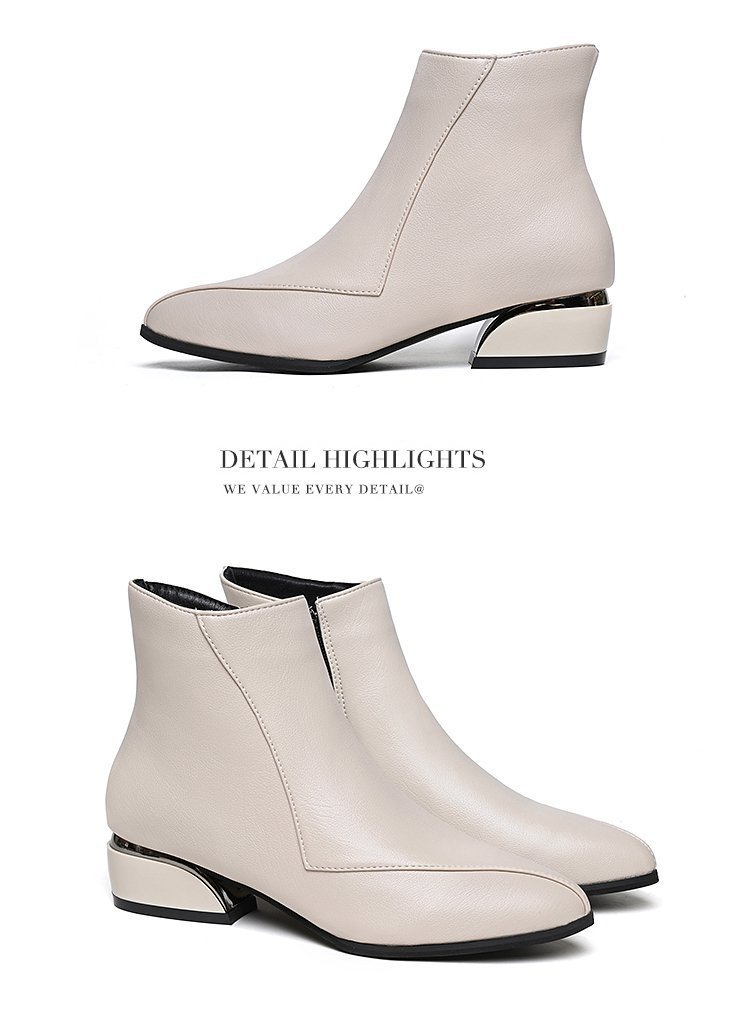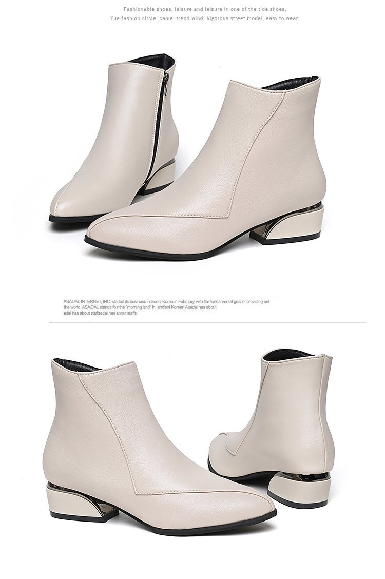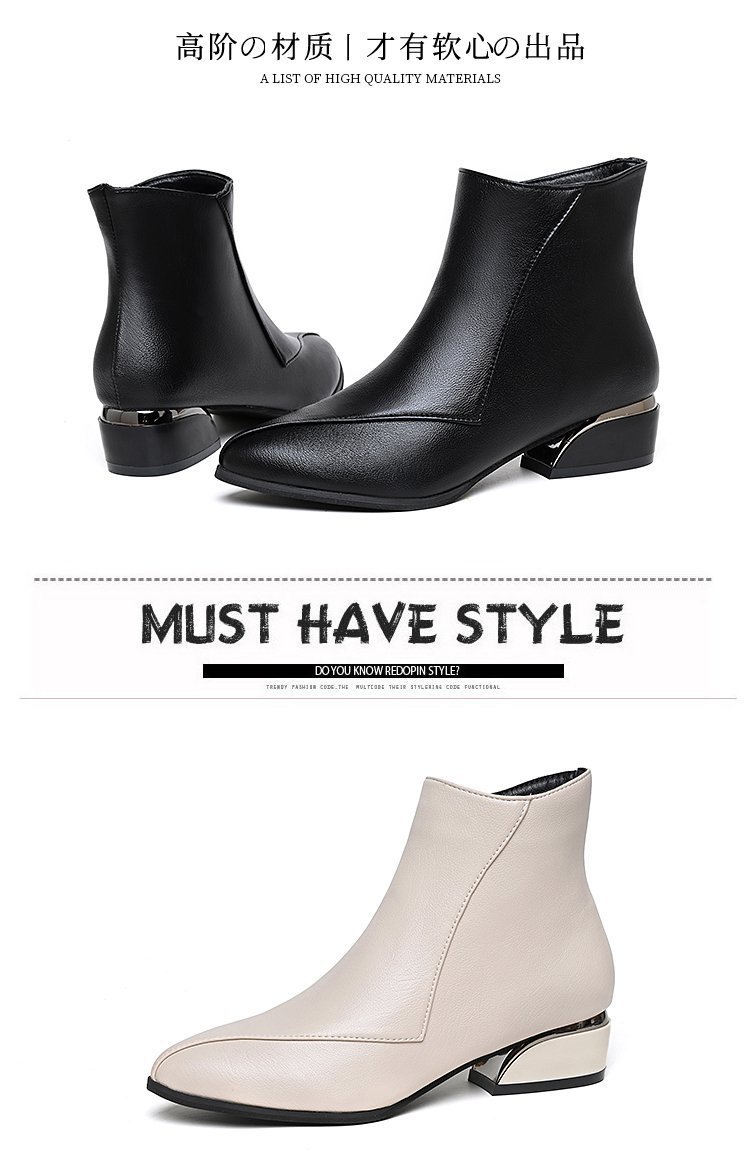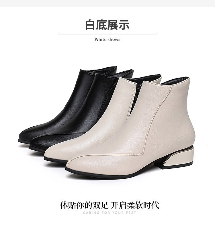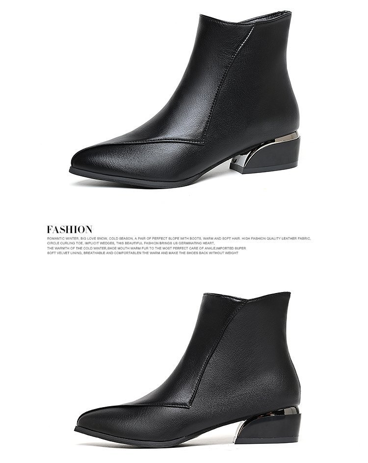 2024 가을과 겨울 새로운 두꺼운 굽 짧은 부츠 여성의 뾰족한 스티칭 사이드 지퍼 미드 힐 마틴 부츠 패션 싱글 부츠 도매 천스토어 가기