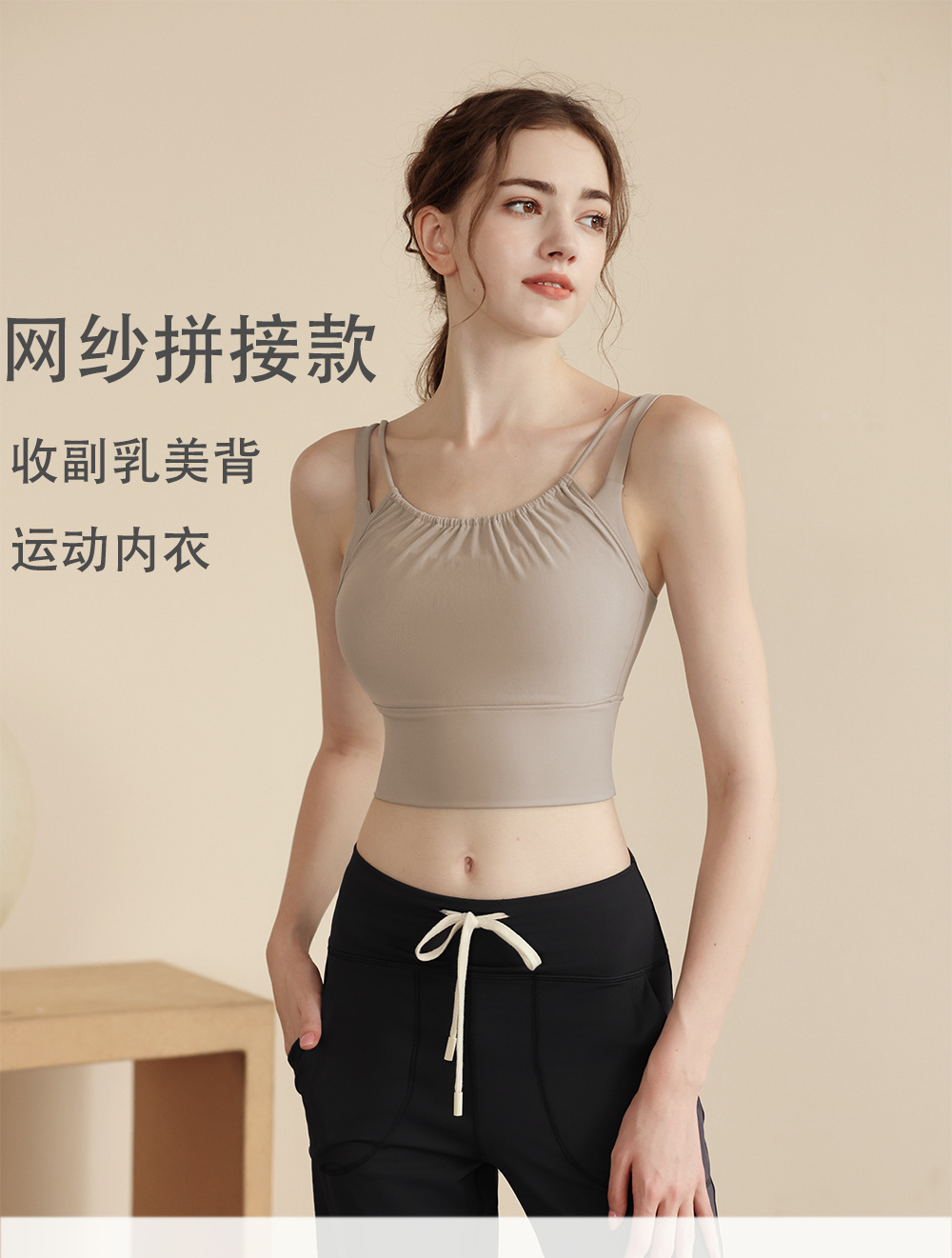 봄과 여름 가짜 투피스 스포츠 속옷 여성의 편안한 통기성 메쉬 스티칭 피트니스 뷰티 백 요가 브래지어