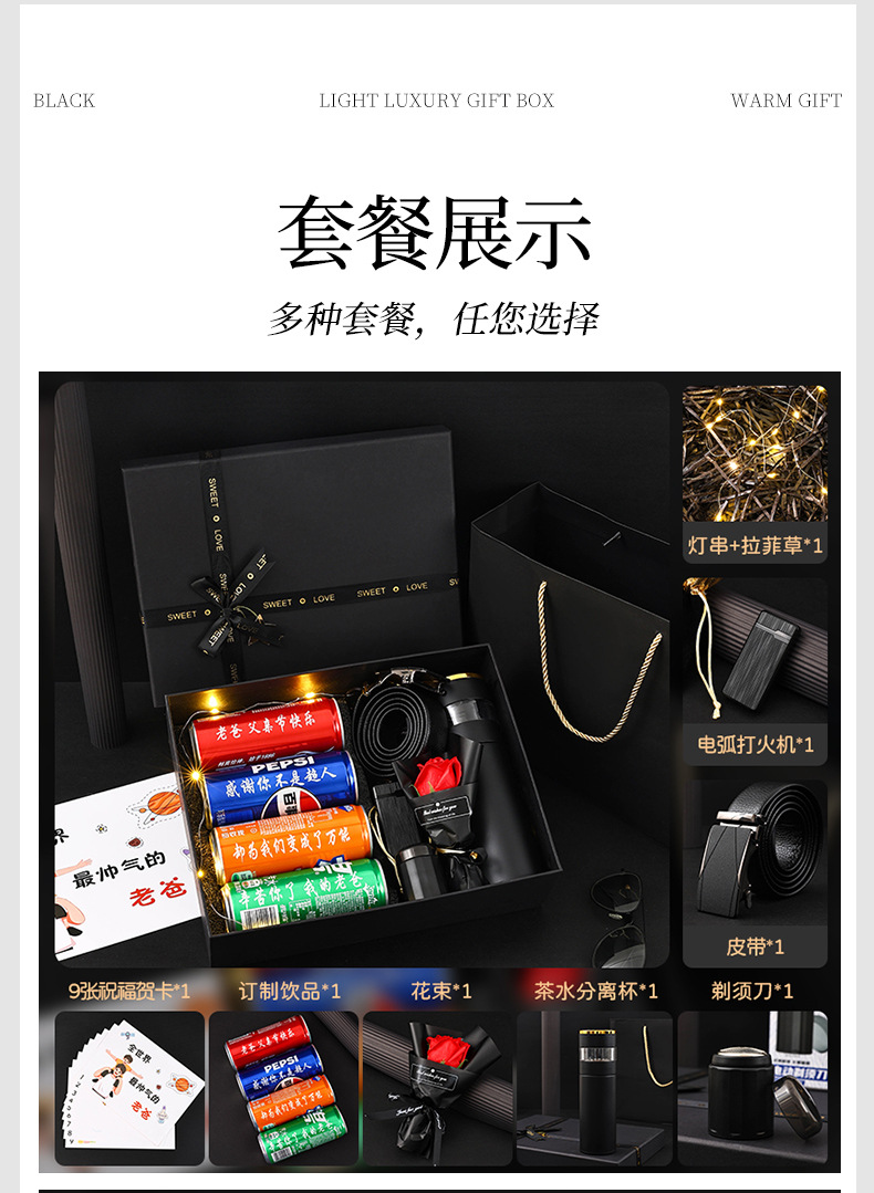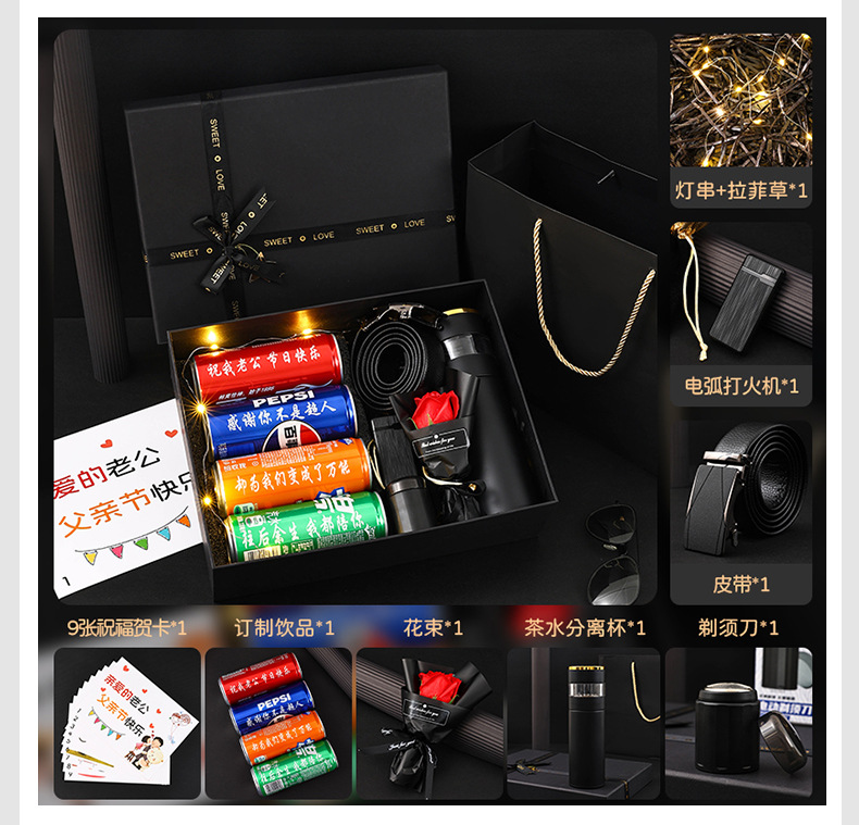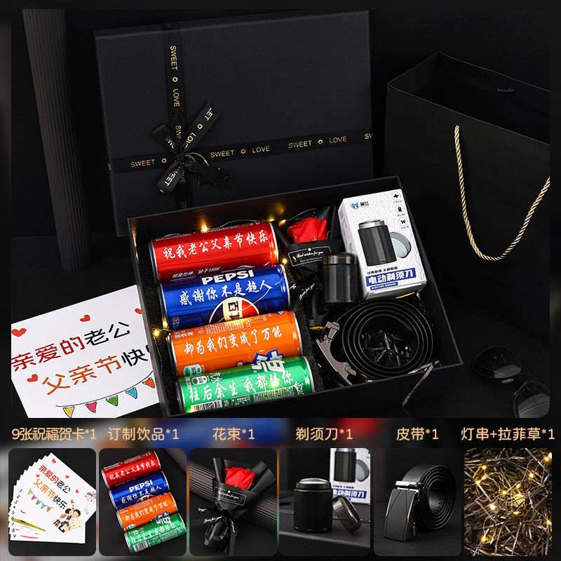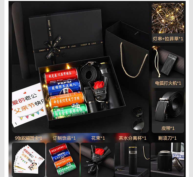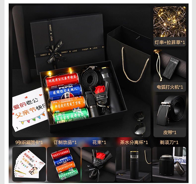 남편 아버지의 날 차 분리기 컵 벨트 담배 라이터 생일 면도기 서프라이즈 선물 세트