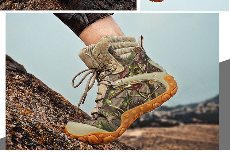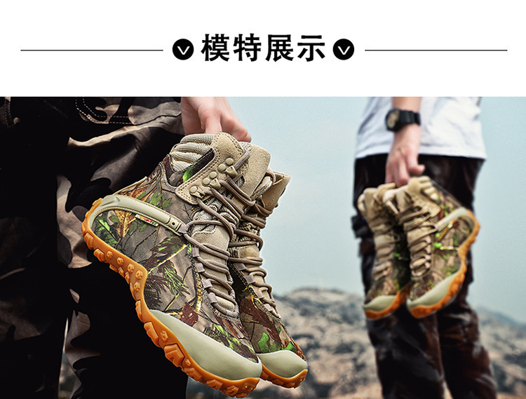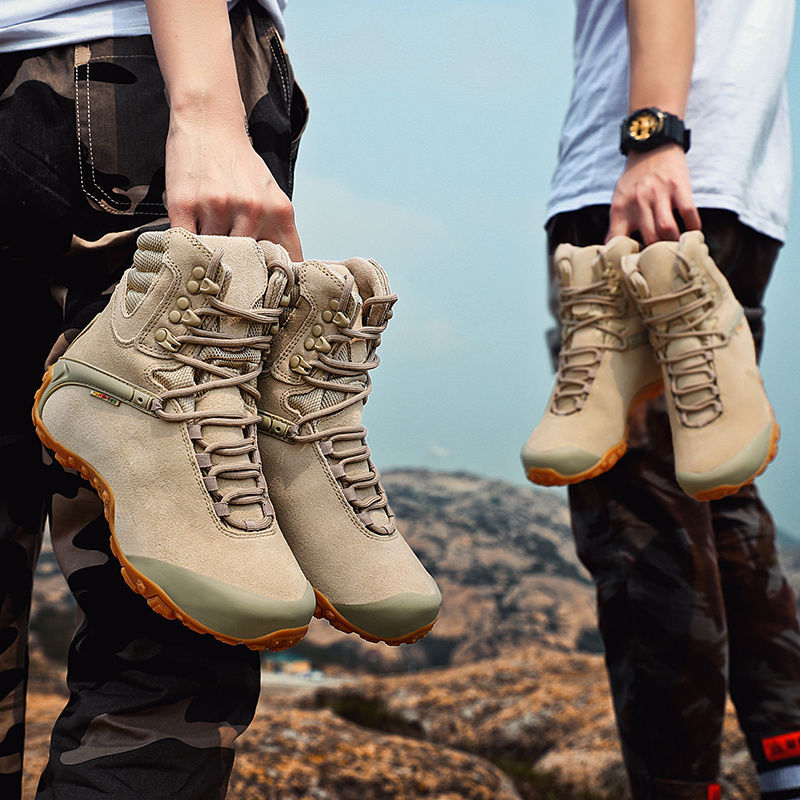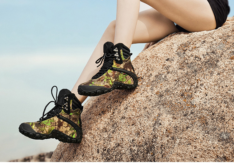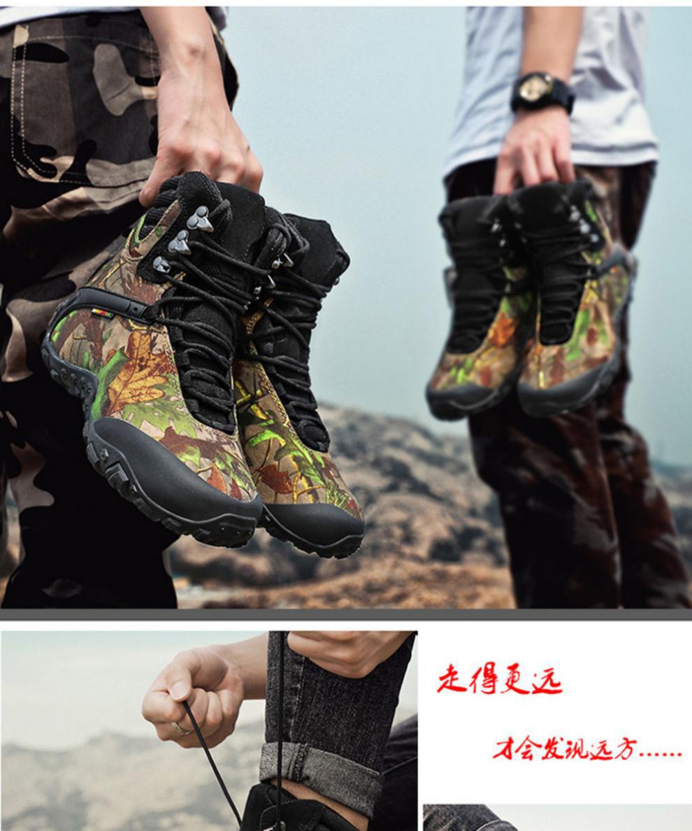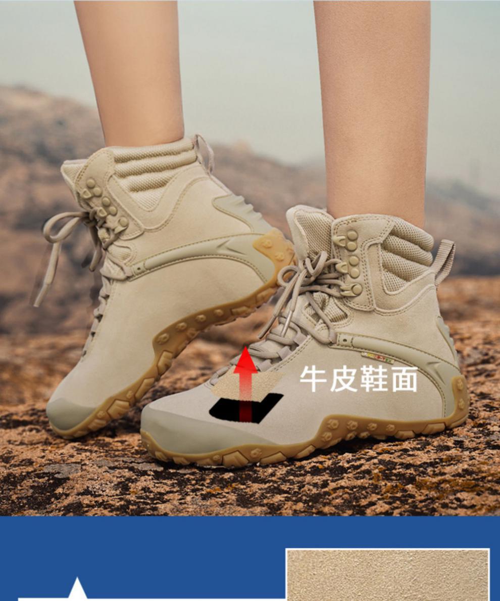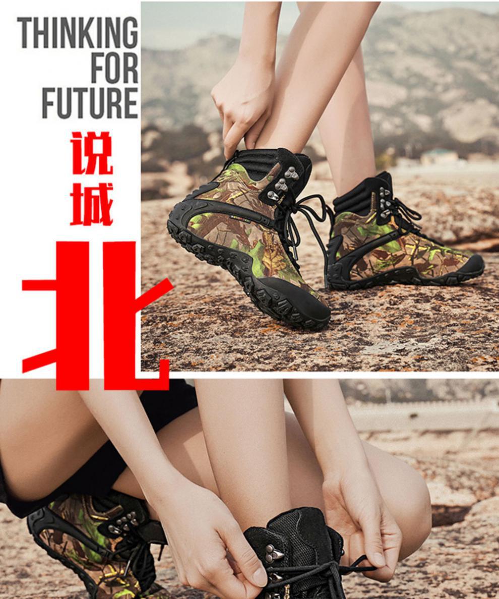 Vsv 새로운 하이킹 신발 여성용 미끄럼 방지 위장 야외 하이킹 신발 남성 하이 탑 소 가죽 사막 부츠 여성 하이킹 신발