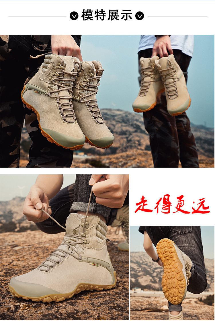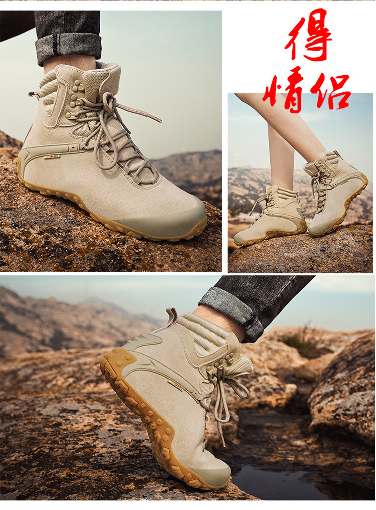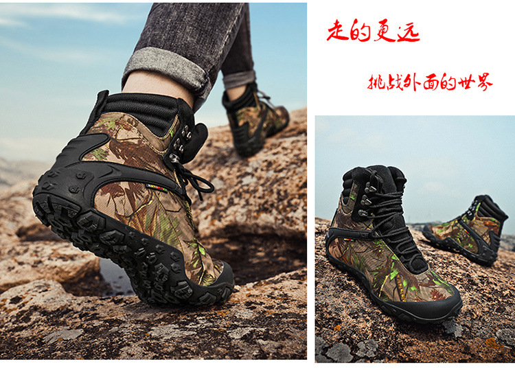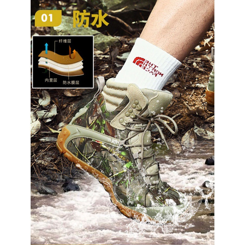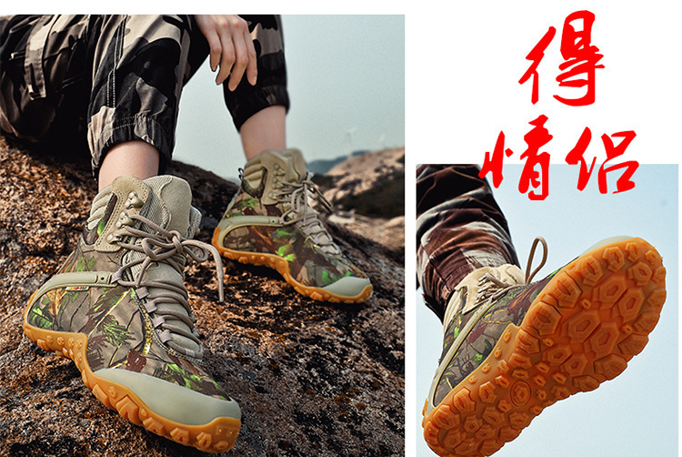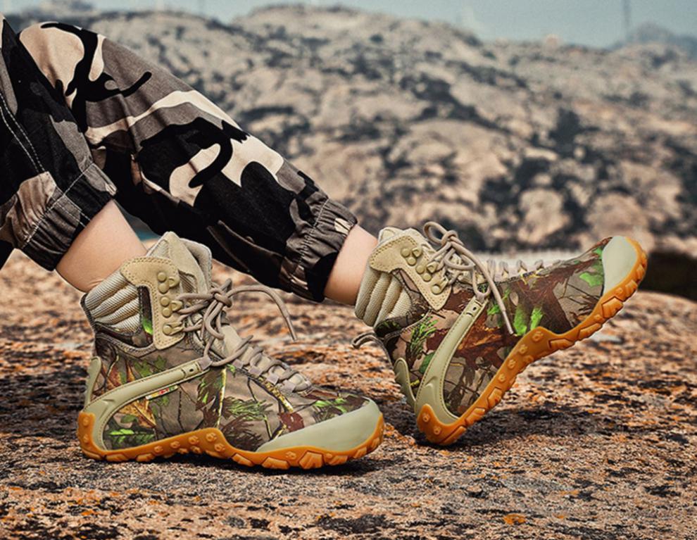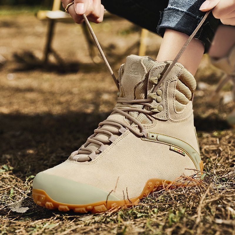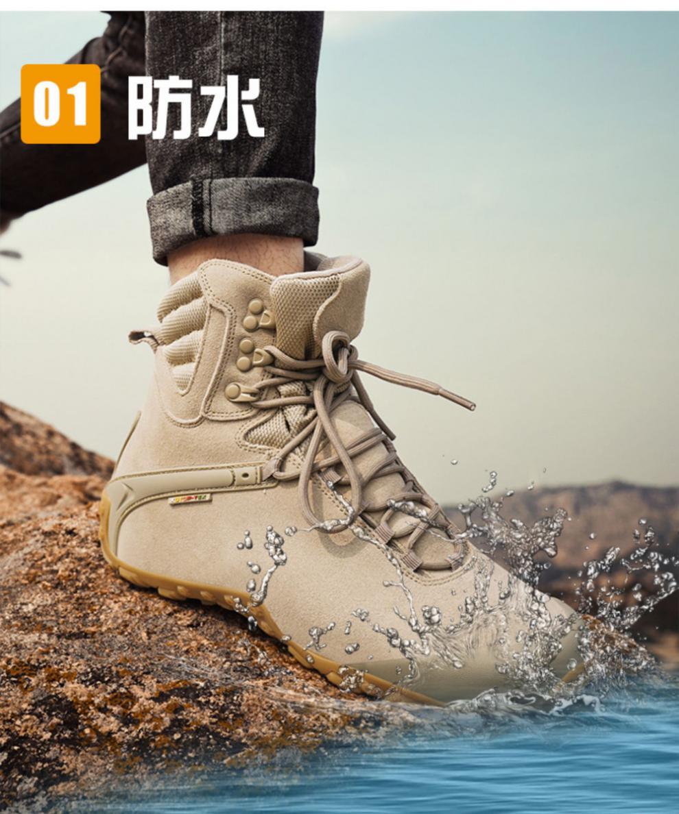 Vsv 새로운 하이킹 신발 여성용 미끄럼 방지 위장 야외 하이킹 신발 남성 하이 탑 소 가죽 사막 부츠 여성 하이킹 신발