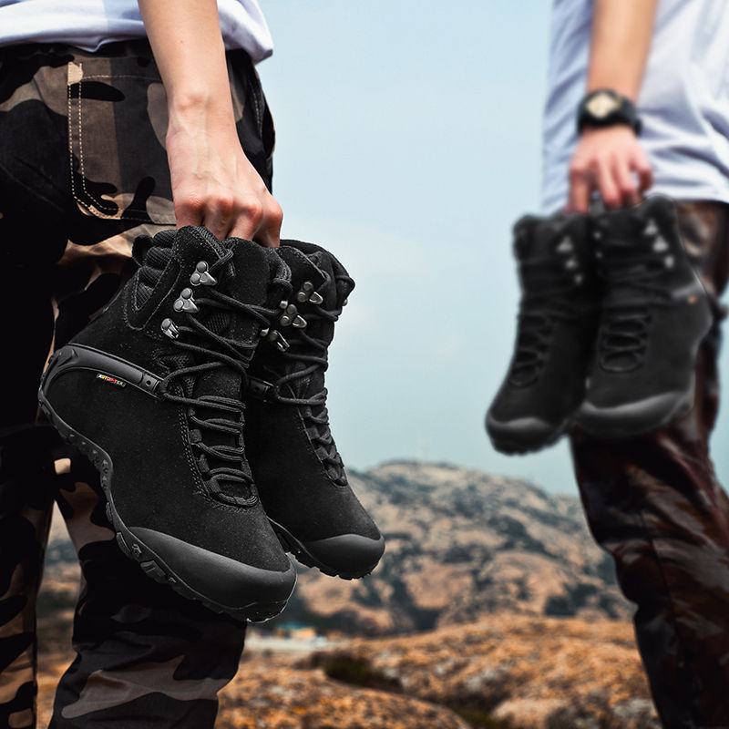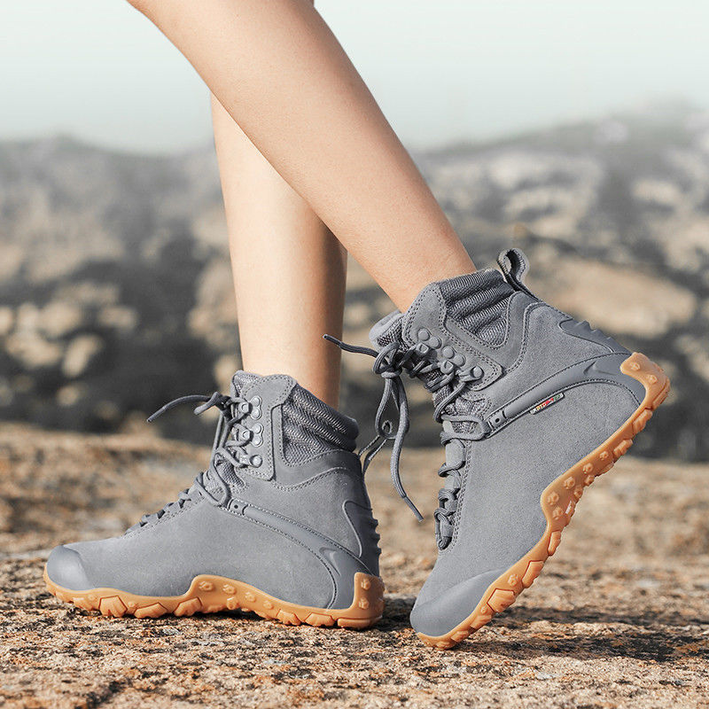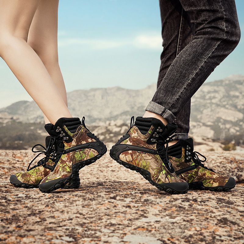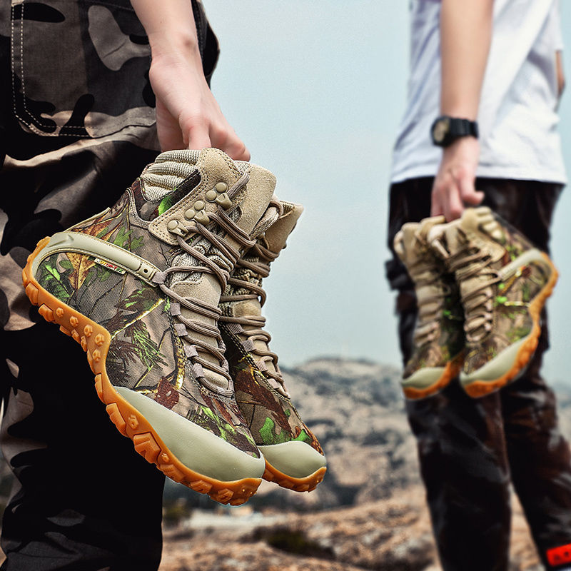 Vsv 새로운 하이킹 신발 여성용 미끄럼 방지 위장 야외 하이킹 신발 남성 하이 탑 소 가죽 사막 부츠 여성 하이킹 신발스토어 가기