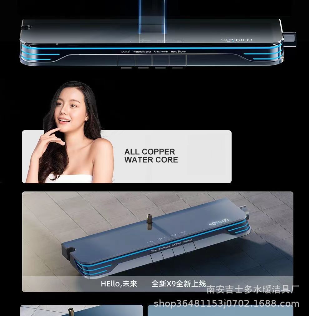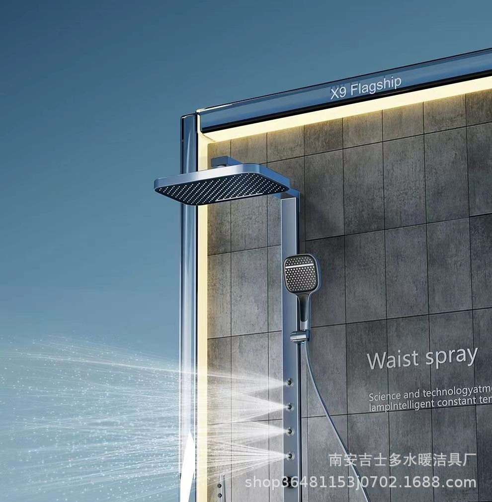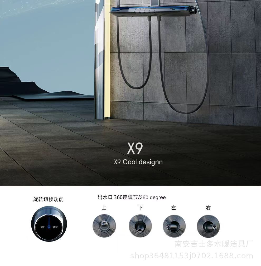 X9 허리 스프레이 총 회색 일정한 온도 디지털 디스플레이 샤워 세트 피아노 버튼 압축 욕실 랙 스프레이 건스토어 가기