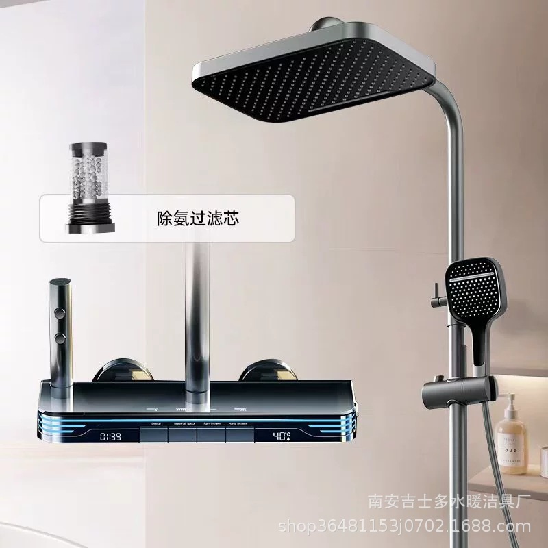 X9 허리 스프레이 총 회색 일정한 온도 디지털 디스플레이 샤워 세트 피아노 버튼 압축 욕실 랙 스프레이 건
