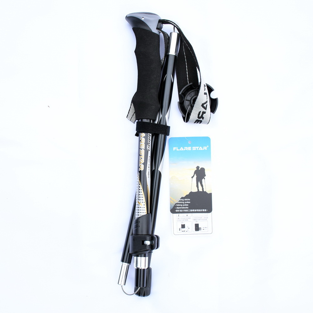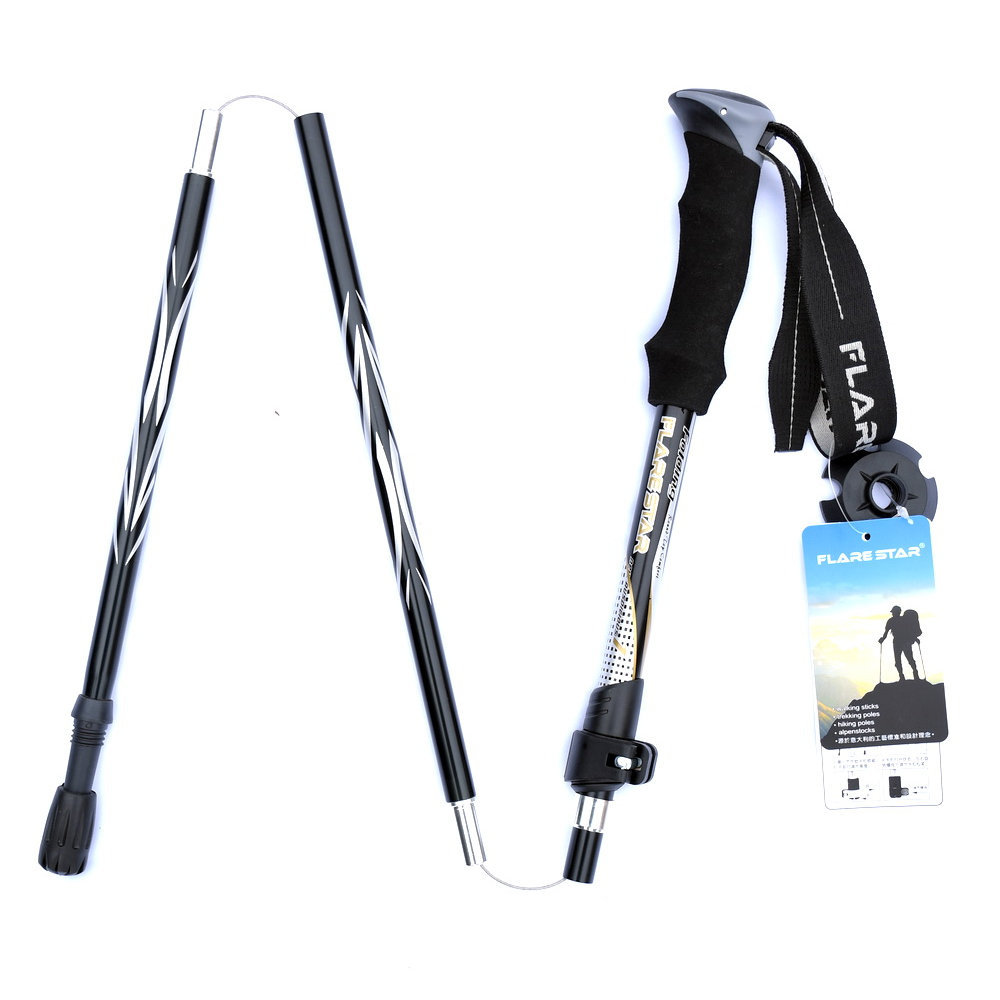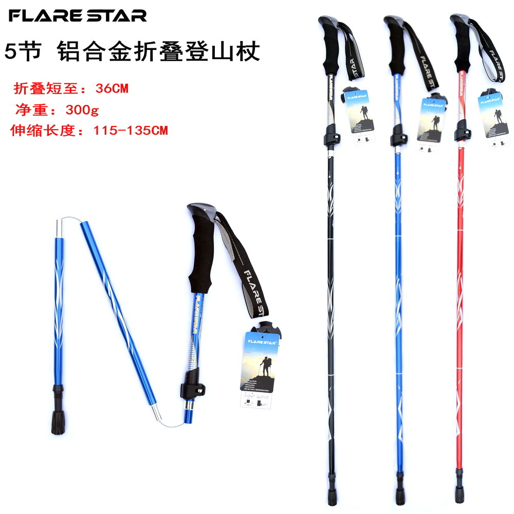 야외 하이킹 클라이버 스틱 텔레스코픽 폴딩 워킹 스틱 알루미늄 합금 5 섹션 접히는 등산가 스틱