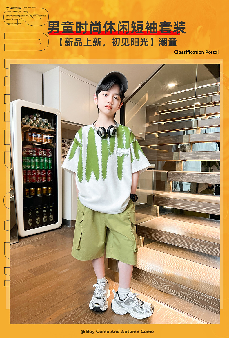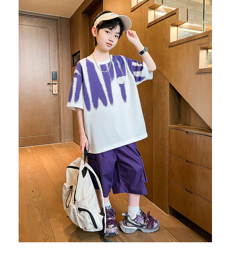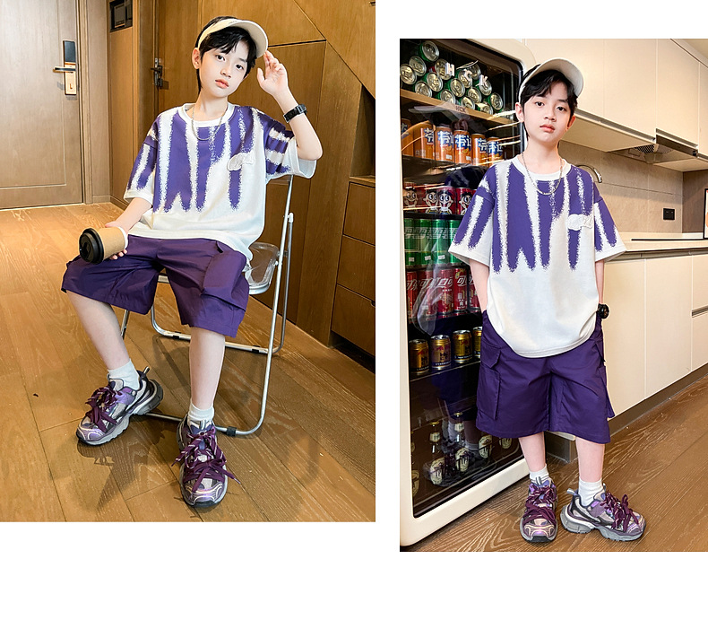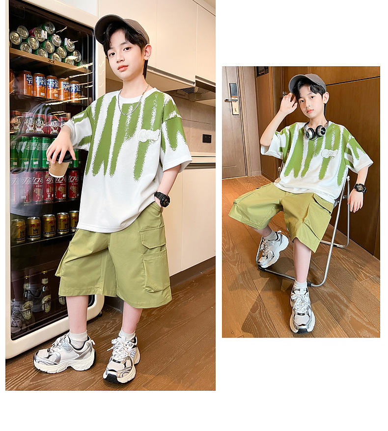 아동복 소년의 여름 착용 세트 2024 새로운 반팔 큰 소년의 얇은 더피 핸섬 스포츠 투피스 세트스토어 가기