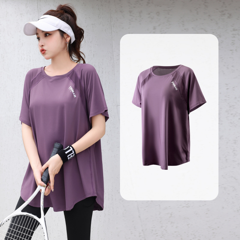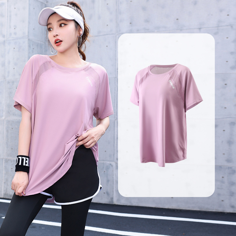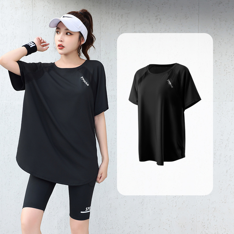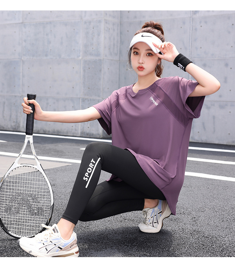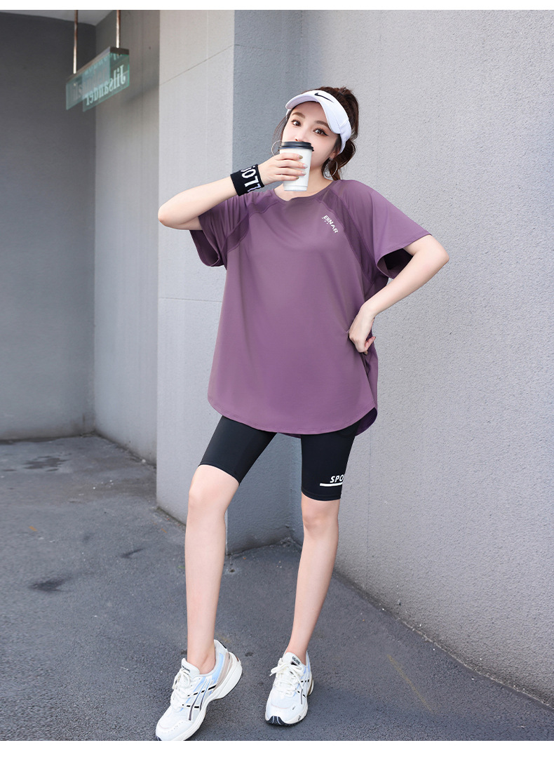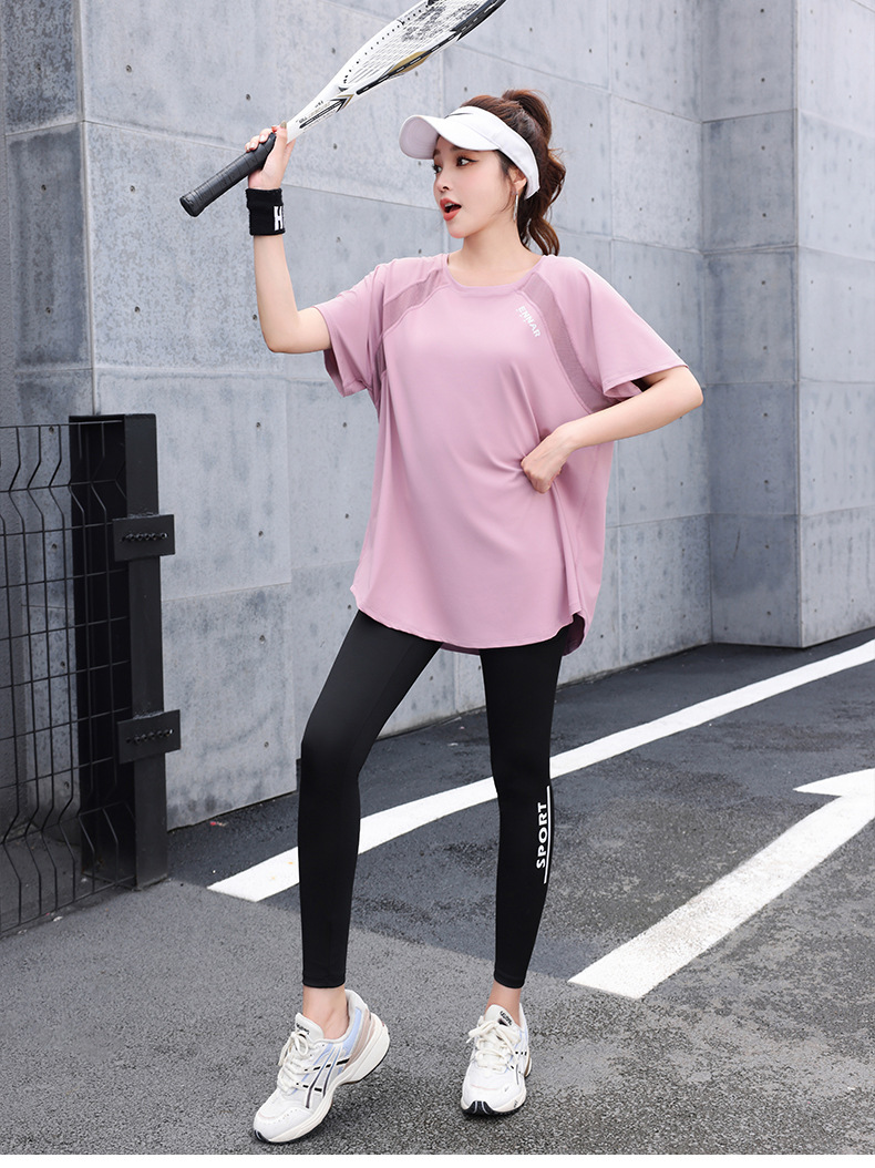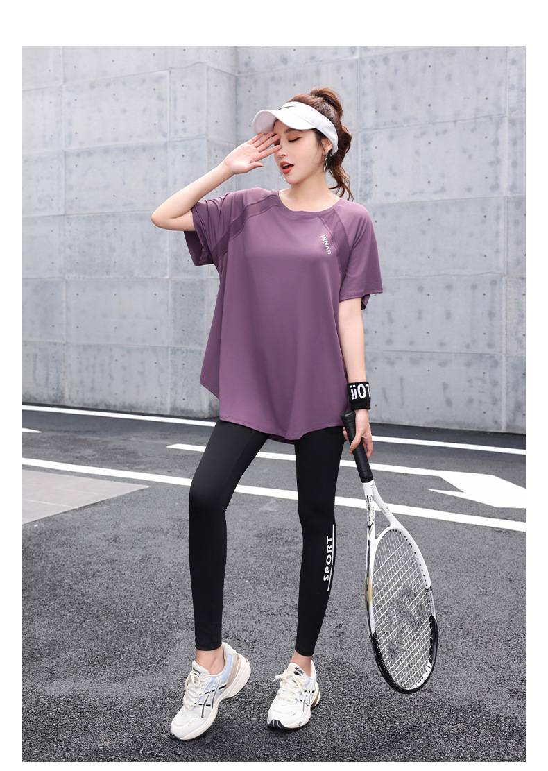 여름 새로운 반팔 티셔츠 느슨한 통기성 배꼽 커버 엉덩이 슬리밍 긴 반바지 스포츠 세트 피트니스 옷