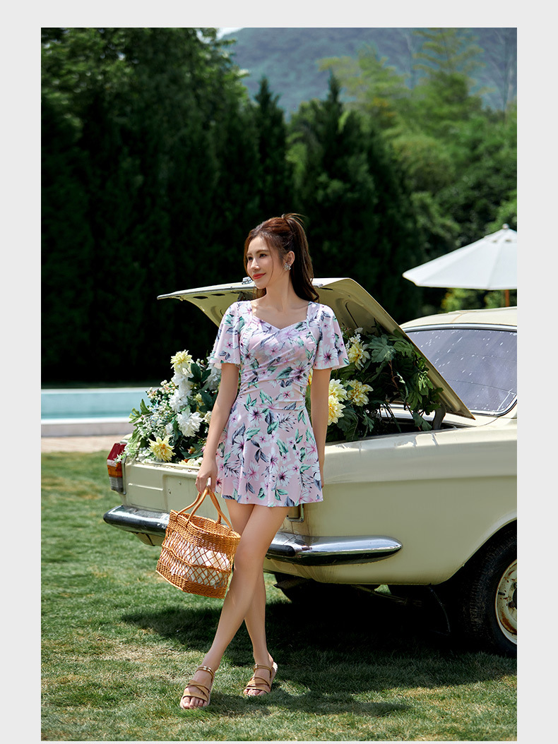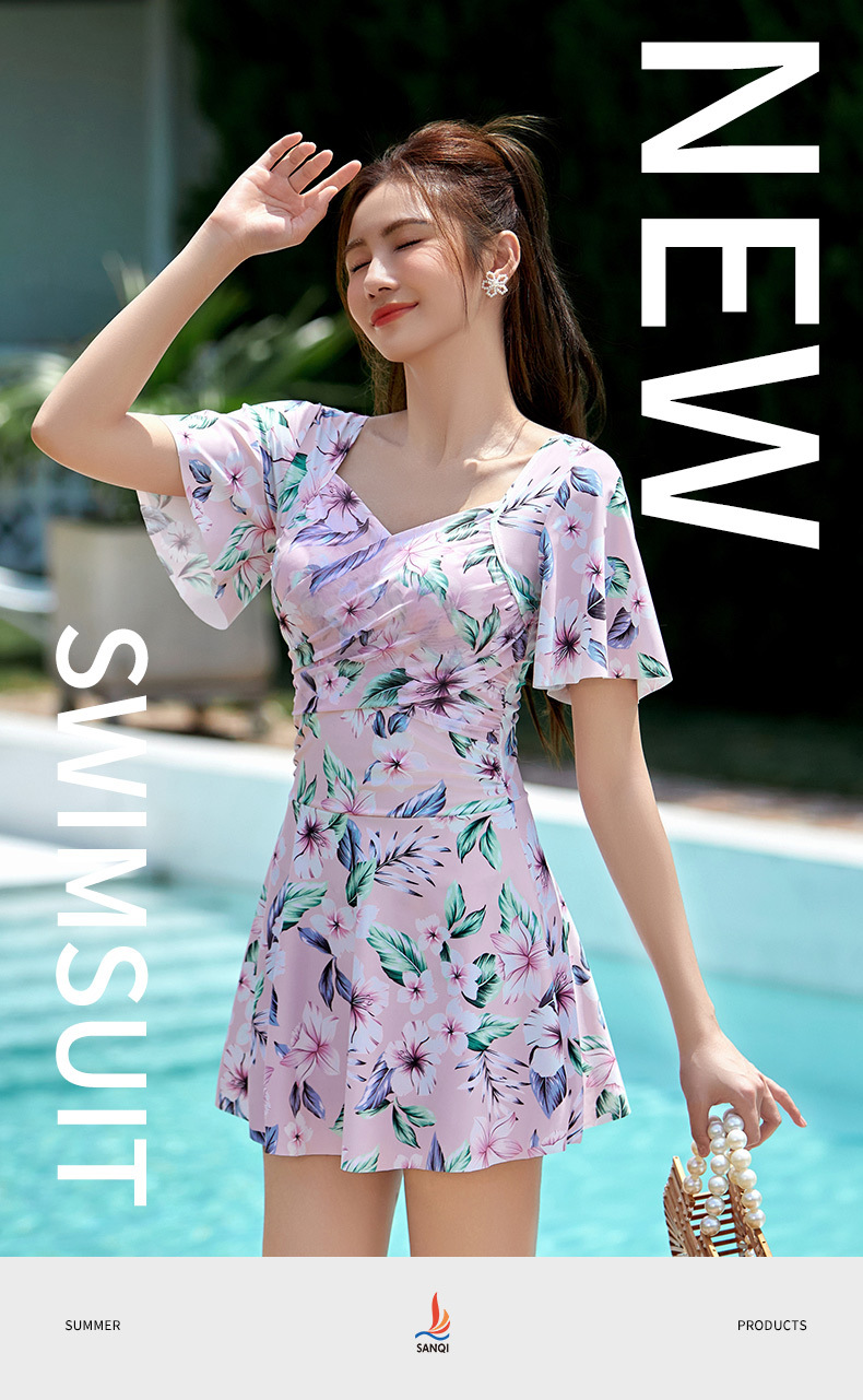 Sanqi 원피스 수영복 여성 2024 새로운 폭발 보수 스커트 수영복 온천 휴가 플러스 사이즈 수영복