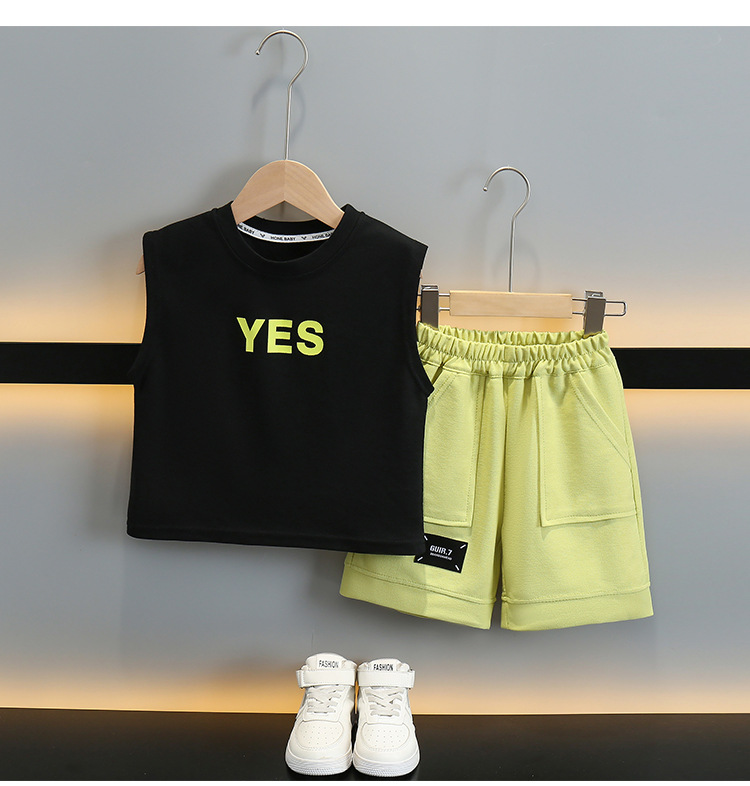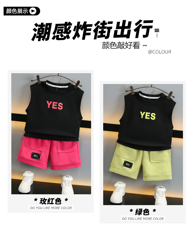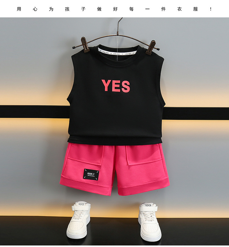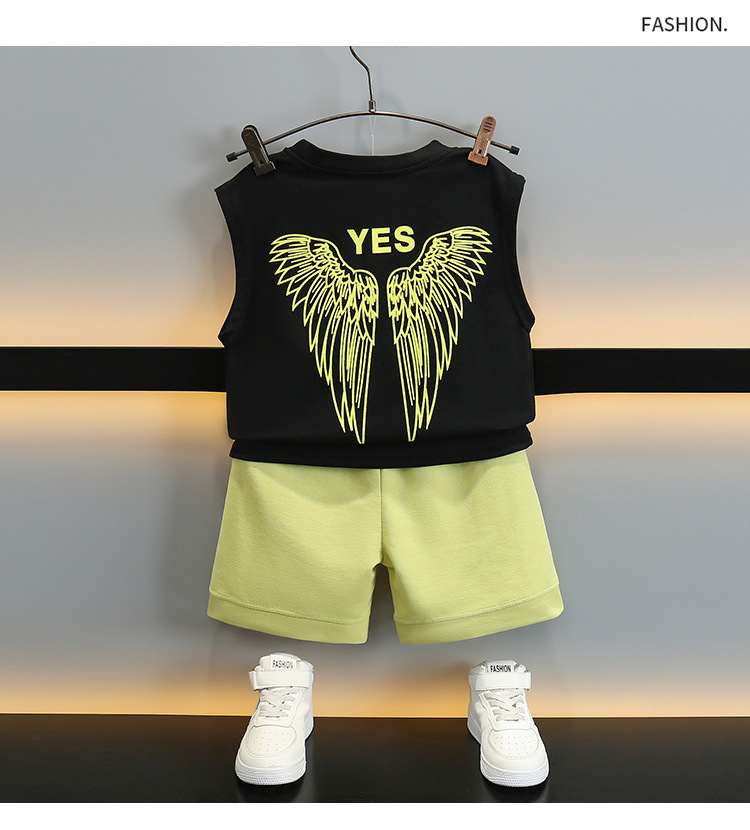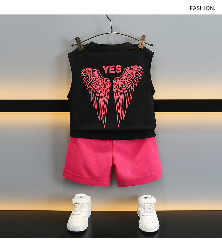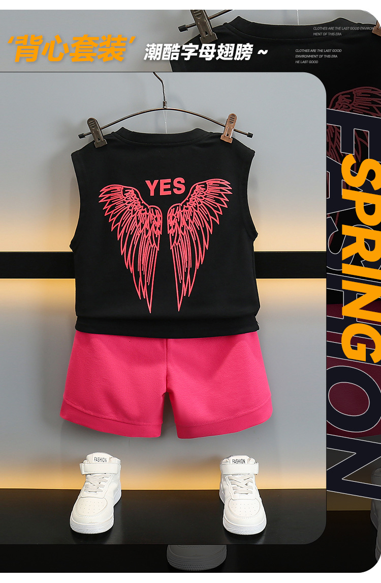 어린이 여름 날개 Vespouse 2024 여름 새로운 어린이 멋진 잘 생긴 민소매 투피스 얇은 유행 옷스토어 가기