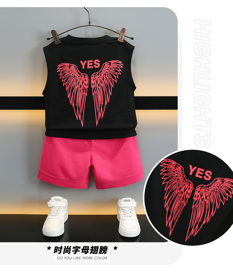 어린이 여름 날개 Vespouse 2024 여름 새로운 어린이 멋진 잘 생긴 민소매 투피스 얇은 유행 옷