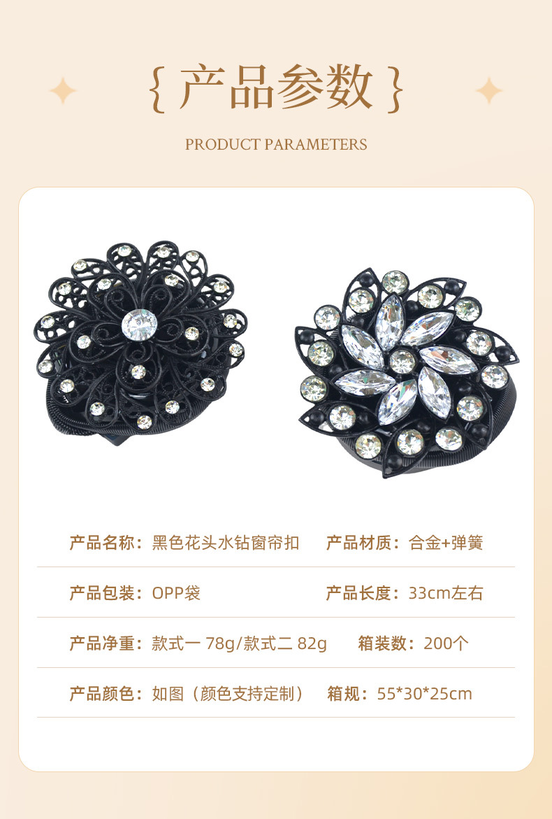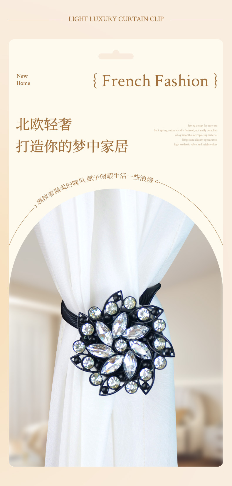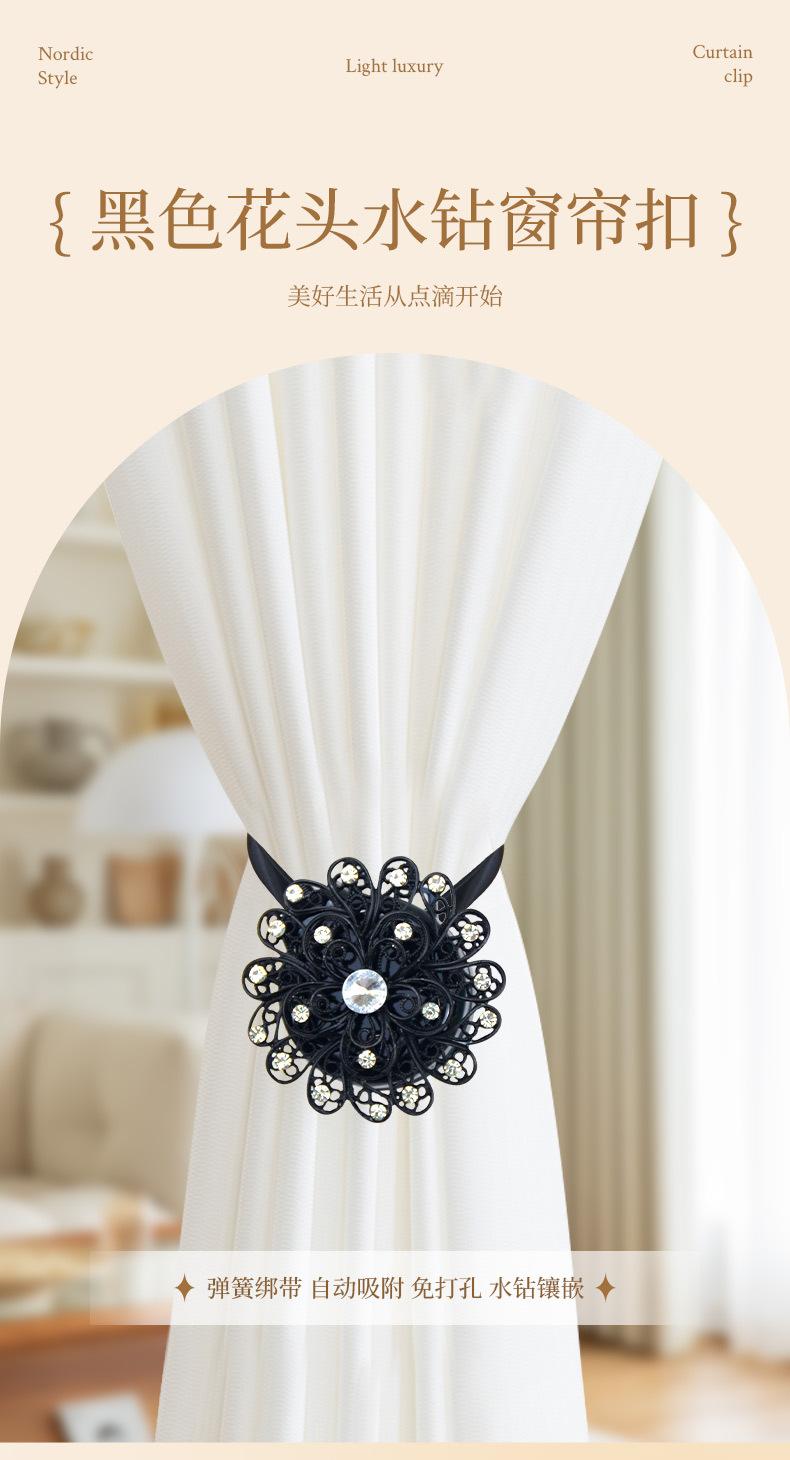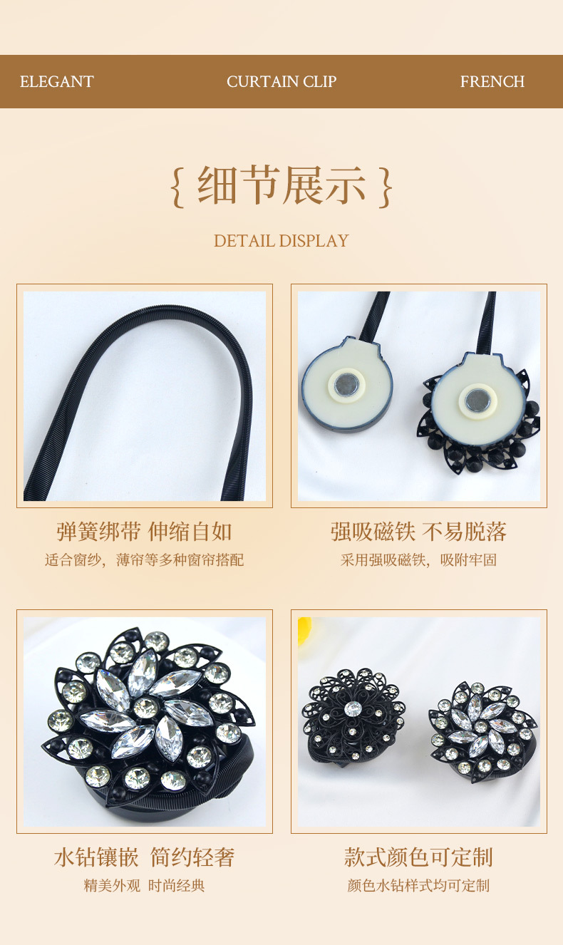 유럽과 미국의 국경 블랙 합금 커튼 버클 현대 간단한 마그네틱 커튼 스트랩 거실 침실 커튼 장식