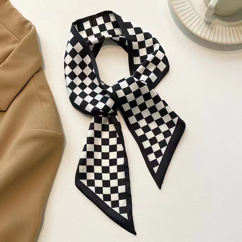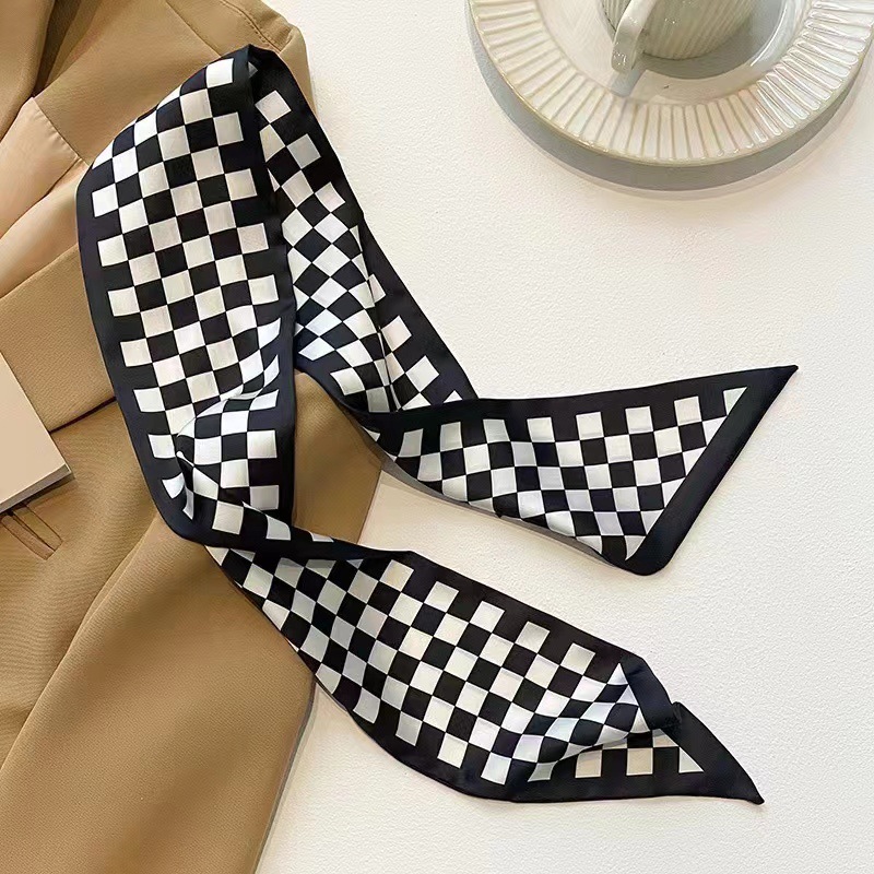 검은 간단한 고급 실크 스카프 헤어 벨트 긴 실크 스카프 밴드 헤어 리본 셔츠 작은 스카프 헤어 액세서리스토어 가기