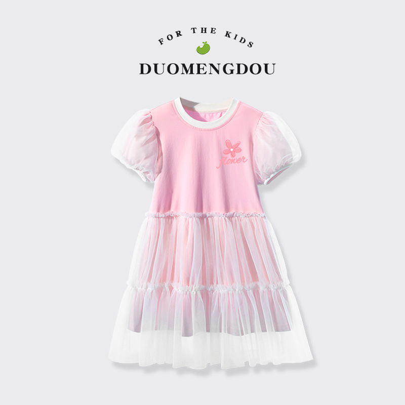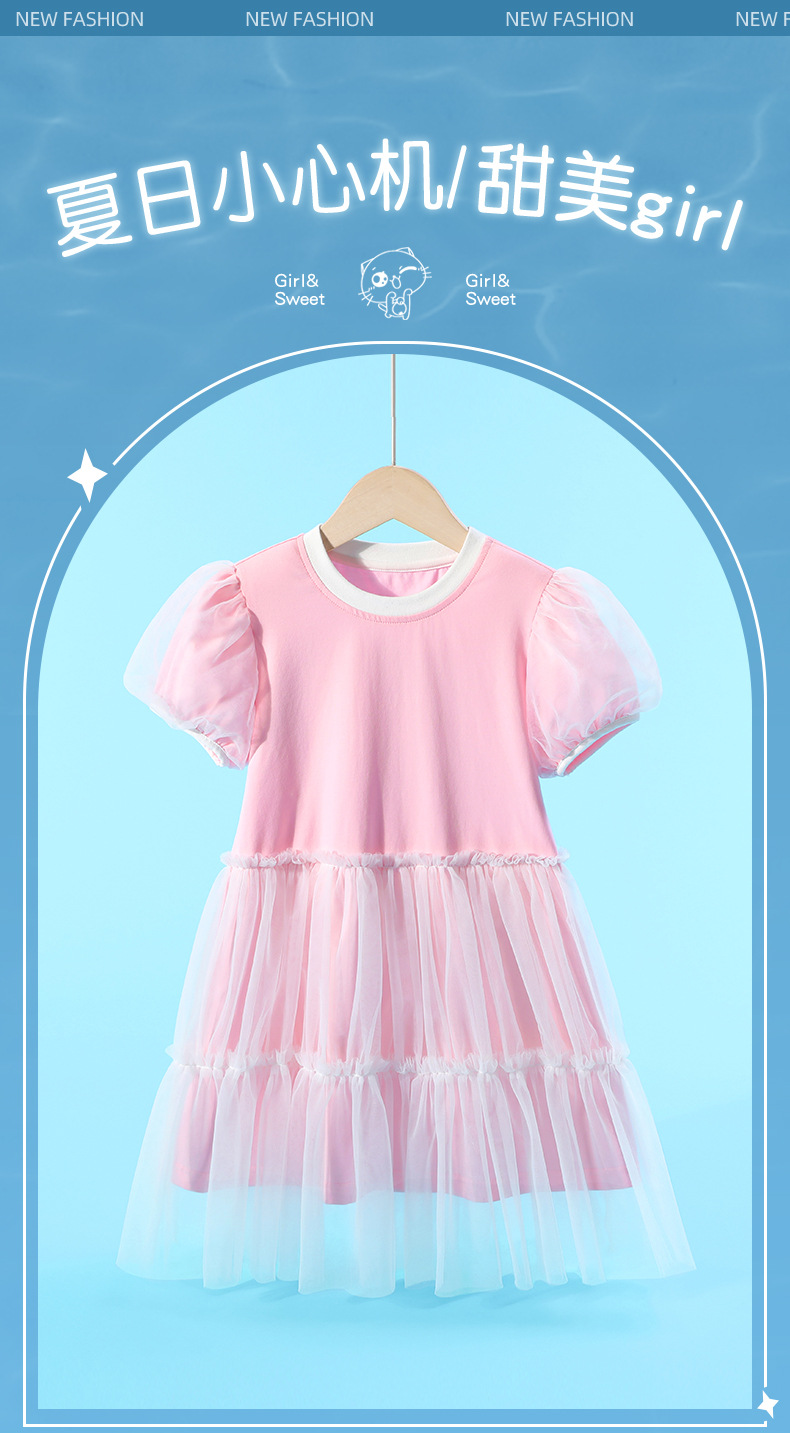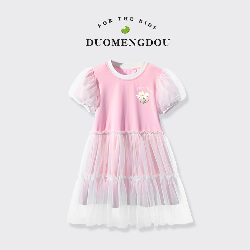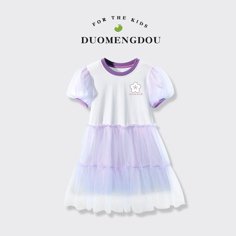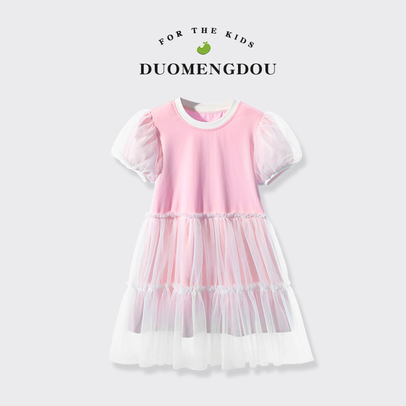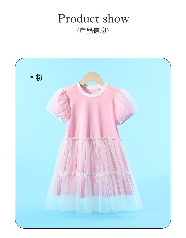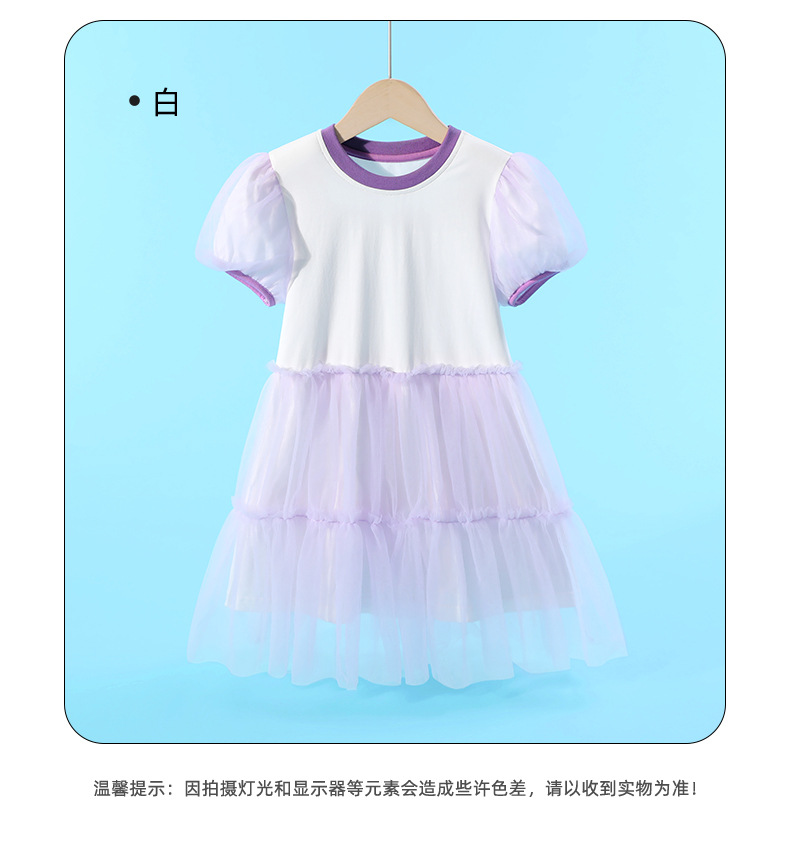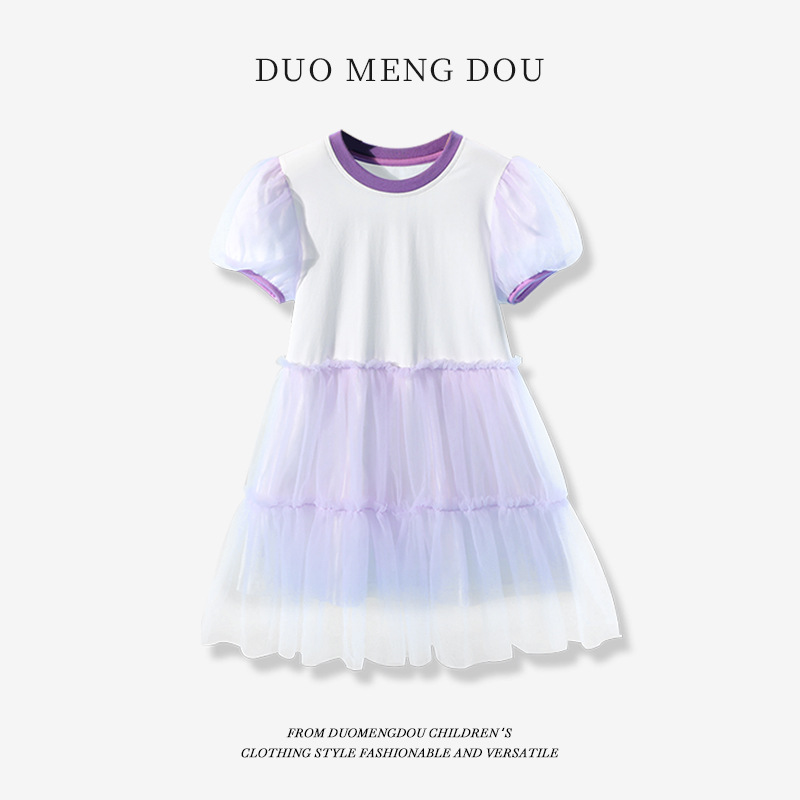 여자 메쉬 드레스 여름 새로운 어린이 대비 칼라 주름 메쉬 공주 드레스 여자 유행 투투 스커트스토어 가기
