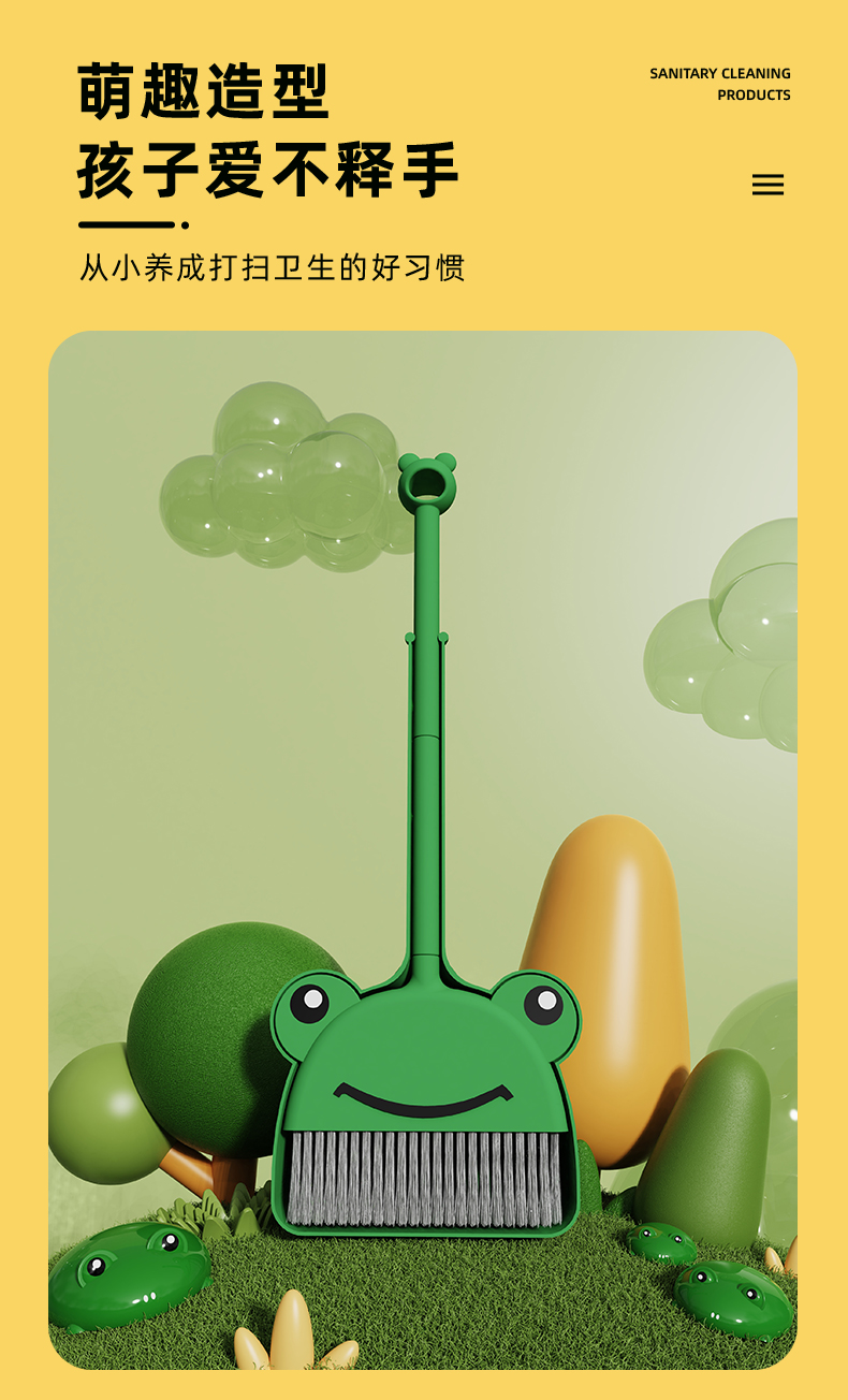 • 만화 개구리 바닥 긁는 도구 + 개구리 성인 빗자루 세트 [가정용 청소 세트]✦