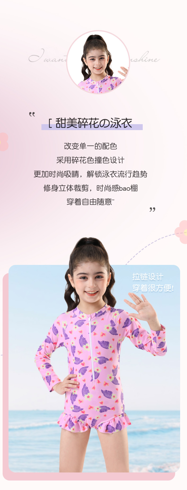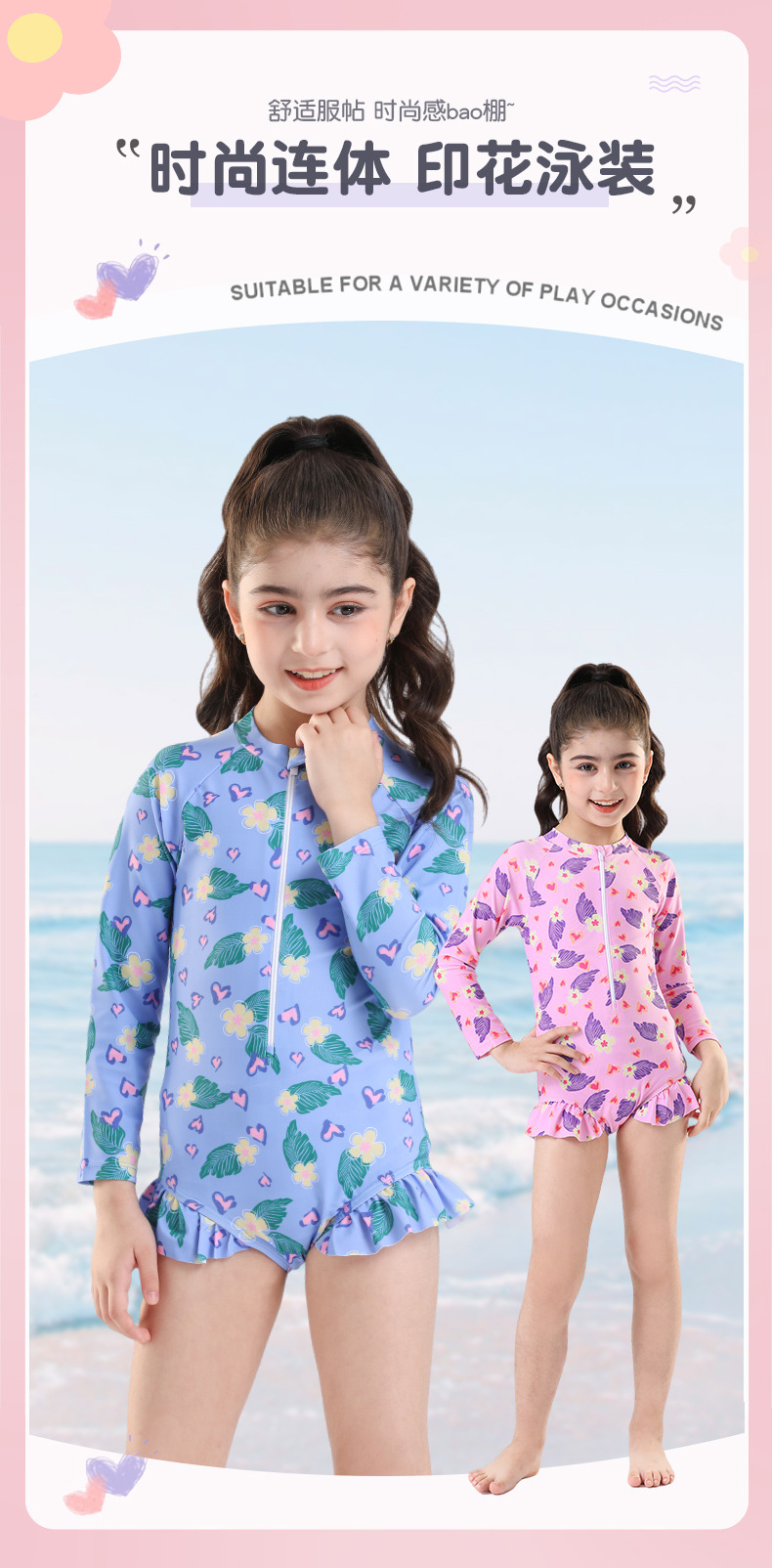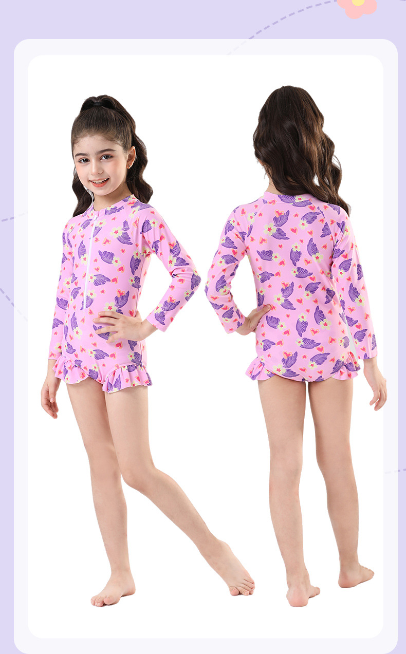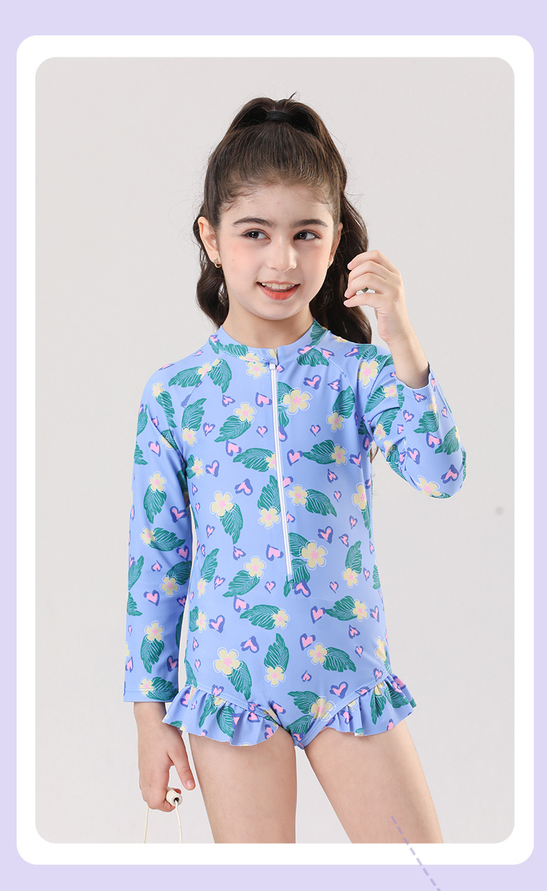 어린이 수영복 소녀 2025 새로운 소형, 중형 및 대형 어린이 아기 귀여운 원피스 수영복 태양 보호 전문 수영복 여름스토어 가기