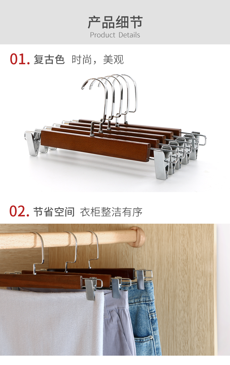 단단한 나무 바지 걸이, 바지 클립, 스커트, 가정용 바지 지지대, 미끄럼 방지, 흔적 없는 의류 매장 걸이, 바지 걸이, 나무 배치