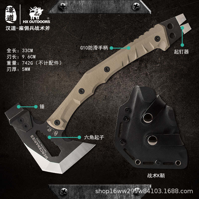 Hando 전술 도끼 도끼 칼 자기 방어 무기 야외 도끼 산 개방형 손 도끼 투척기 다기능 산 개방형 캠핑 도끼