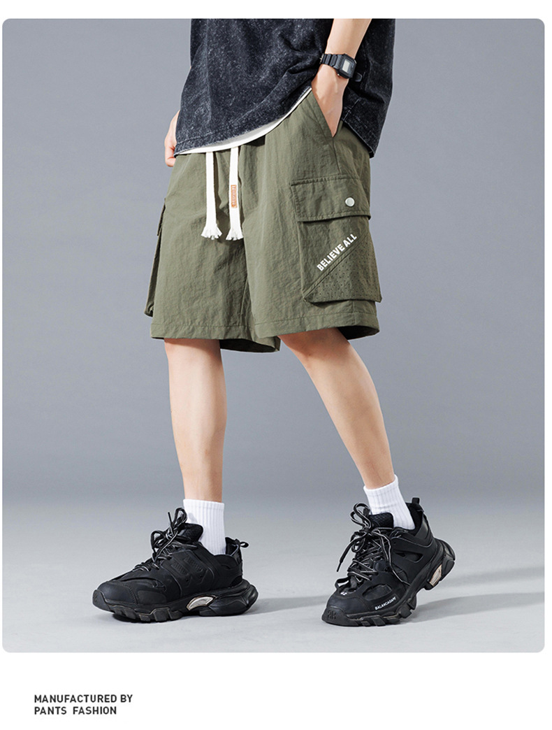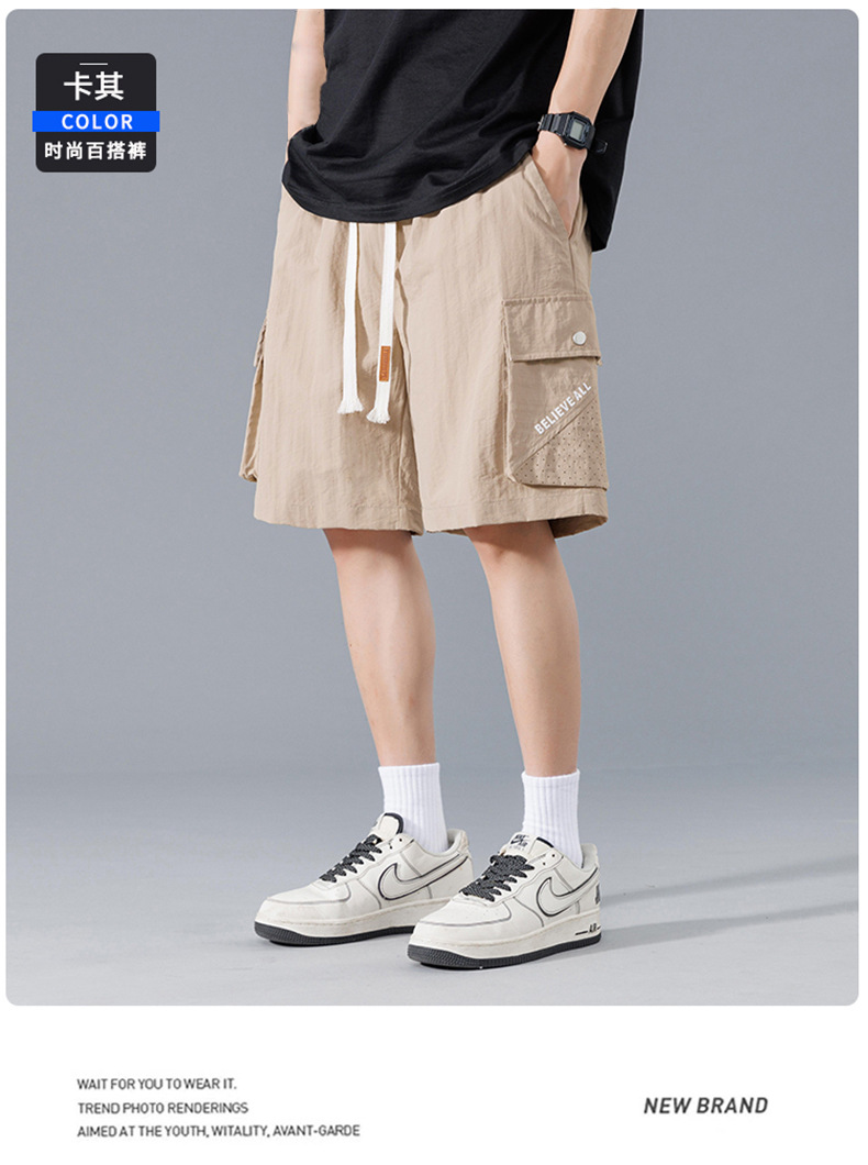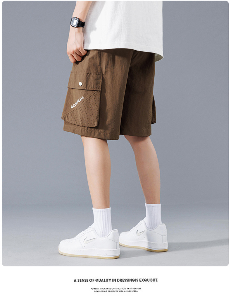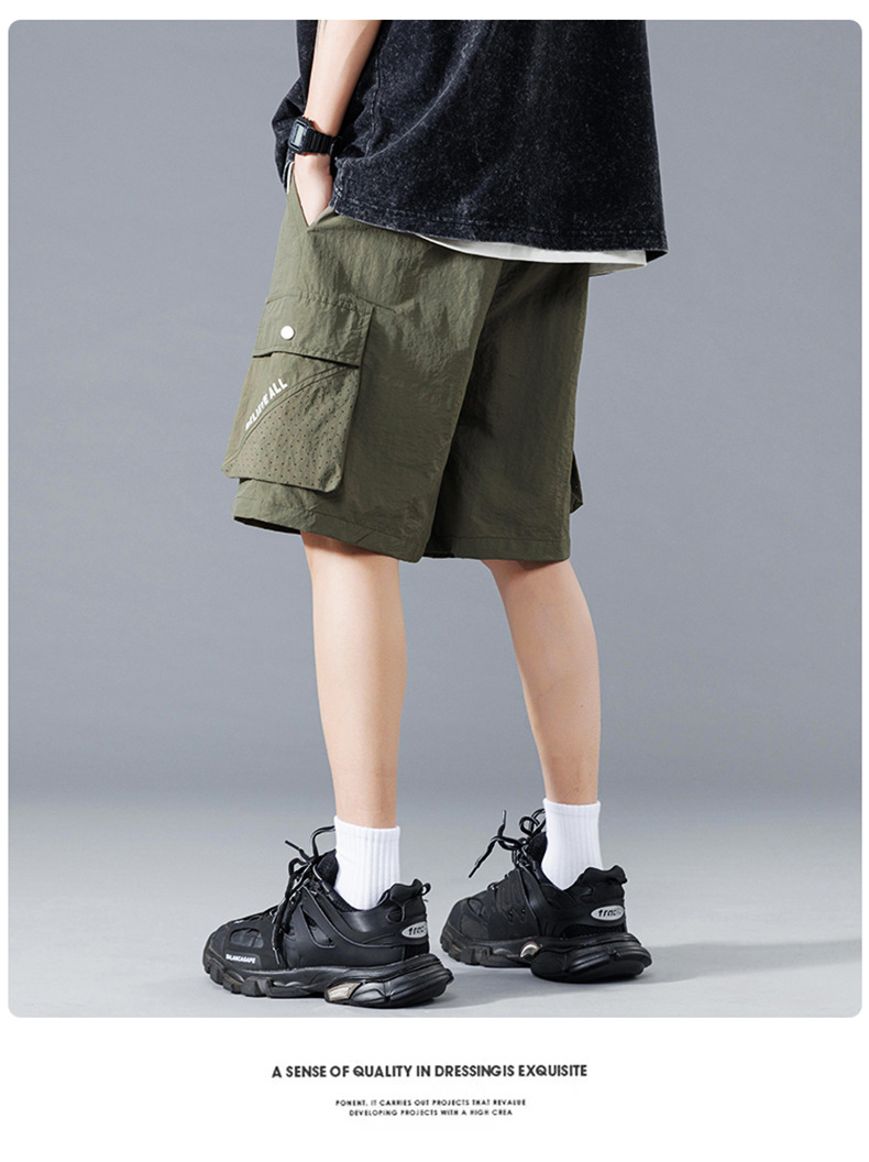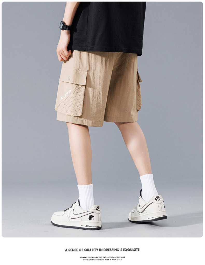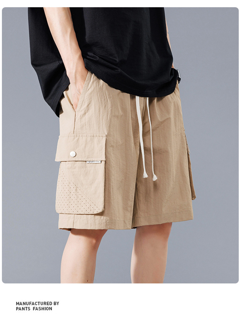 여름 트렌디 한 남성용 작업복 패치 백 5 점 중형 바지 통풍 대형 플러스 뚱뚱한 느슨한 통기성 아이스 실크 펀치 짧은 바지스토어 가기